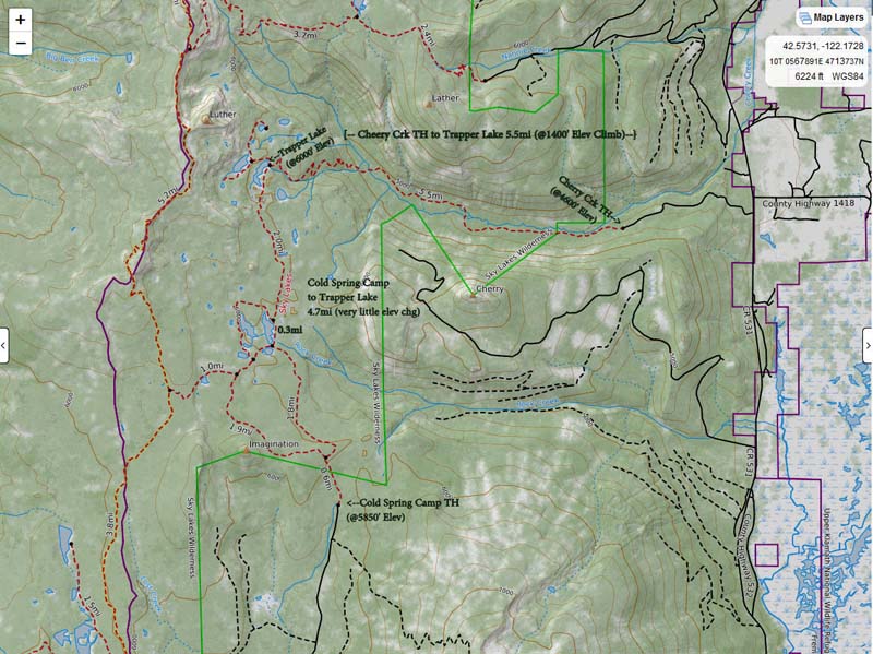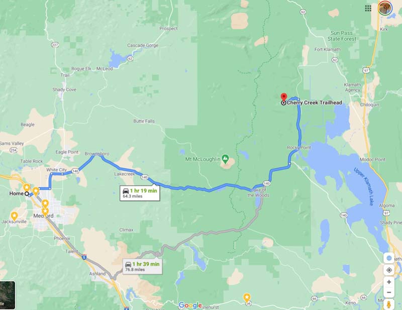 The same lake can be accessed with a 10 mile return hike from Coldsprings TH. Like several Klamath area TH’s, this caters to equestrians.