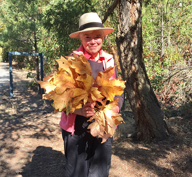 Suddenly, we were surprised by the appearance of a new mysterious hiker, Elder Zinger (EZ). Zinger directed us up the hill deeper into the woods where the large golden-leafed maples grow. Steadily climbing we found that most of the maple leaves were still green. It may be days longer before the maple colors turn.