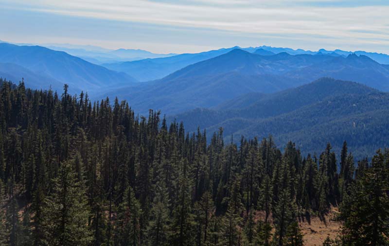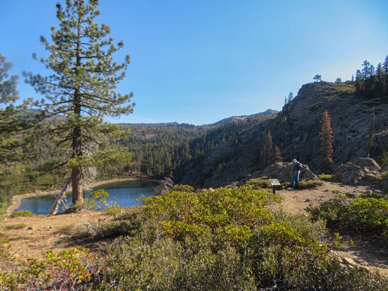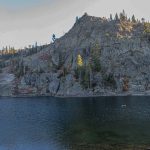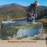 After lunch, some of our group ventured down the PCT looking for another path to the alpine lake. We cut a half hour off on the return hike, but did stop at the Kangaroo Overlook to view two Bald Eagles circling and diving into the lake. When we got back to parking we went out to the lake now calm and drenched in warm sunlight and listened to the calls of the Eagles up on the cliff that descends into Kangaroo Lake.