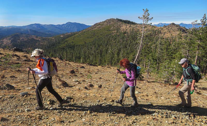 The twice postponed hike into California’s Marble Mountains became reality Monday under sunny skies that shone on golden fall hills. We drove the 75 mile route down to Kangaroo Lake for our hike out to Bull Lake. This was the first time on this beautiful hike for half of our party of eight.