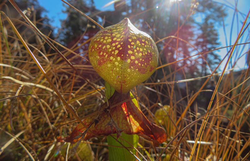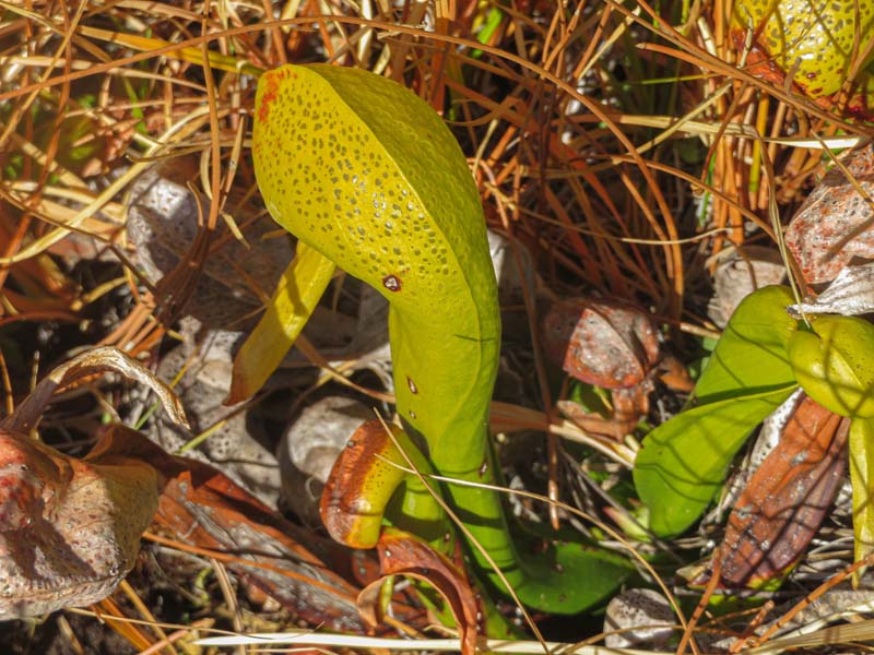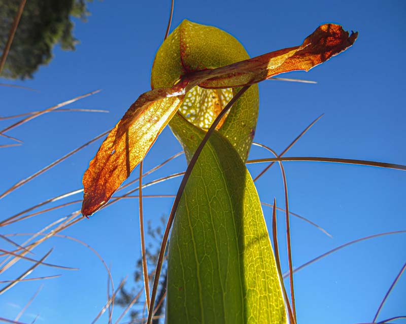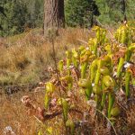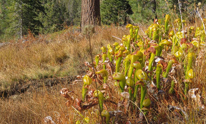The bright skies made for great views of surrounding mountains. And the mild temps made for a comfortable hike. On our way out to Bull Lake, we came across a fabulous array of Cobra Lilies growing out of spring water that populated the hillside for some 300 feet up. We stopped for lots of pictures of the curious plants that feed on flying insects that get trapped inside the plant’s acid filled gullet.