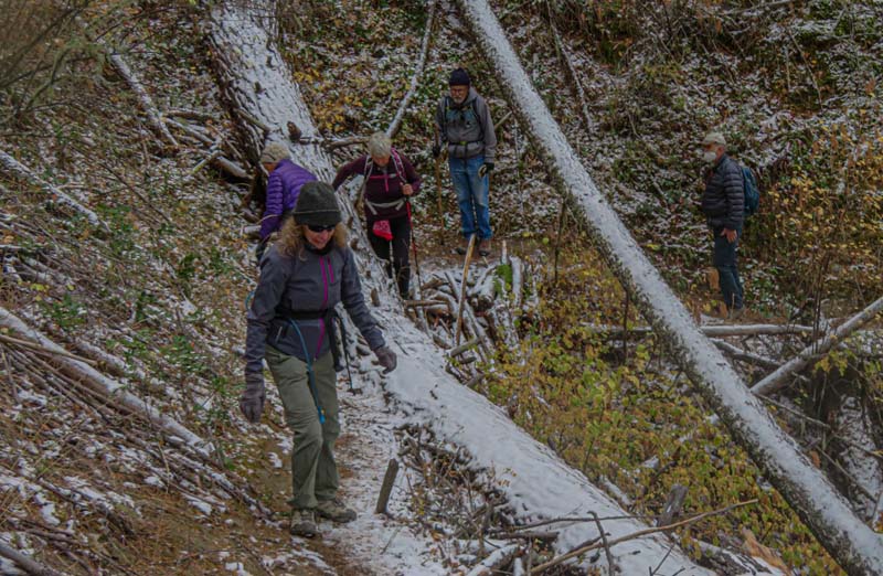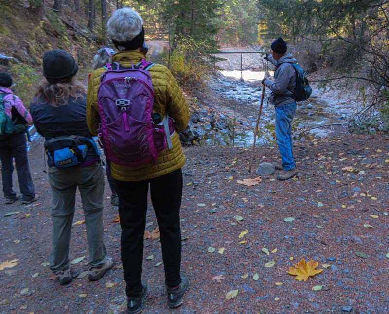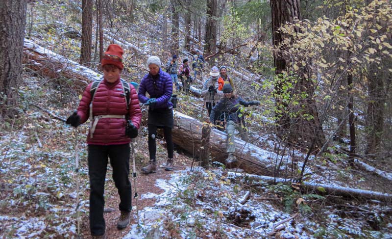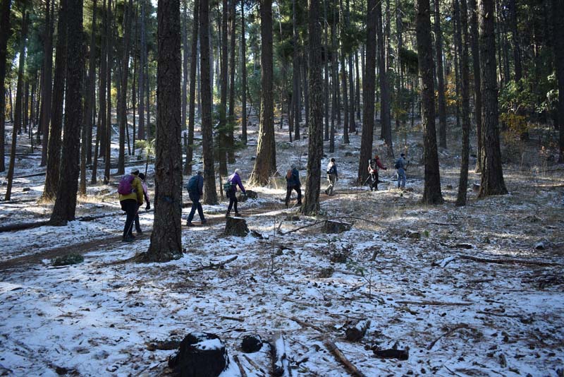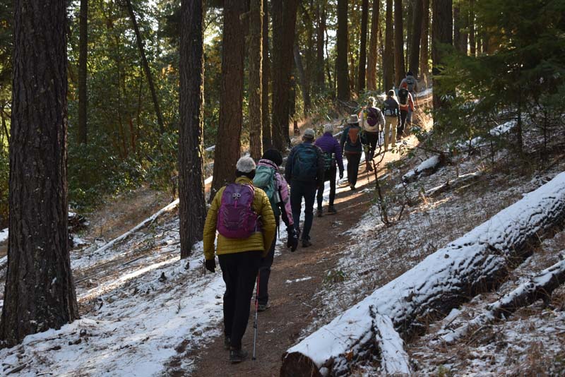 A change in the weather had us donning our base layers and winter socks. Prepared for the chill in the air we departed Rite Aid at 9:30 for a new local hike in the Ashland watershed. A group of ten adventurous hikers caravaned up to the top of Morton Street then up Ashland Loop Road to the parking at White Rabbit trailhead.