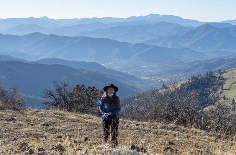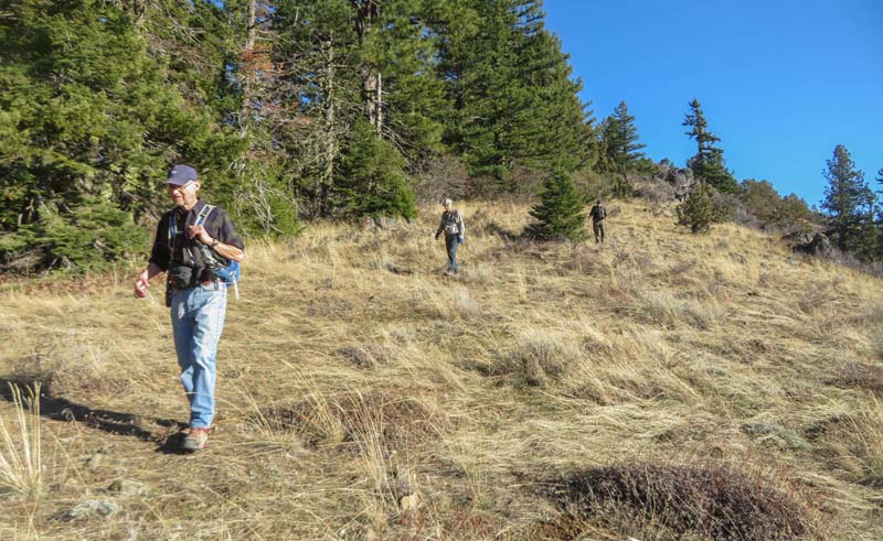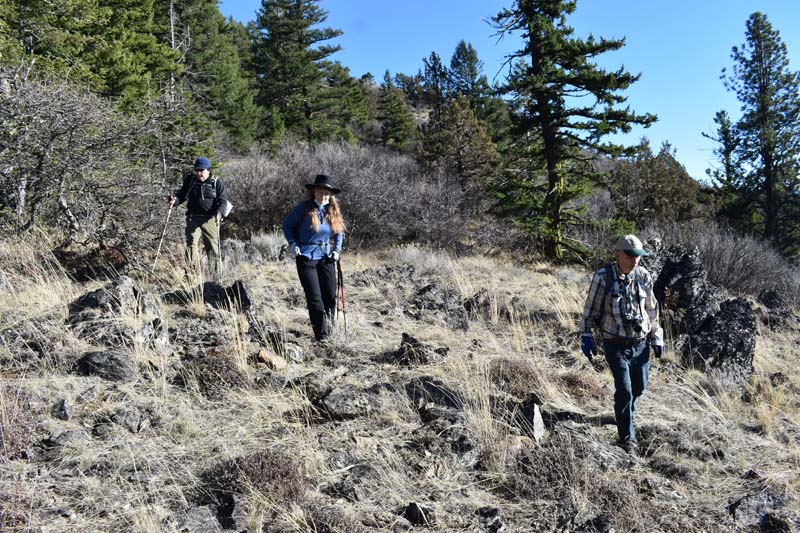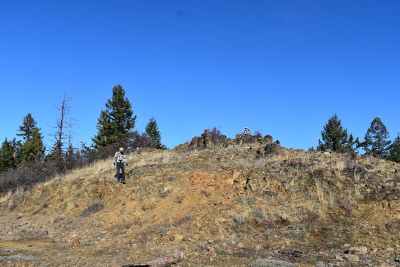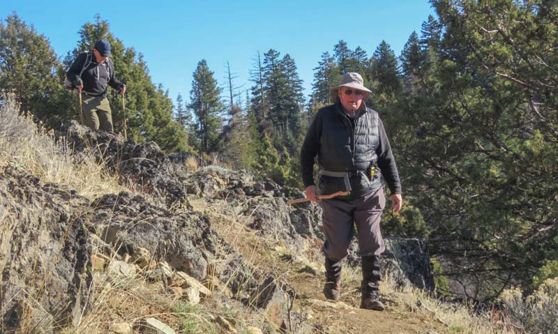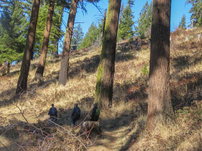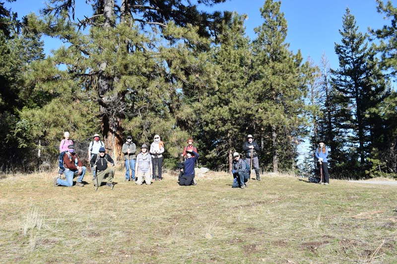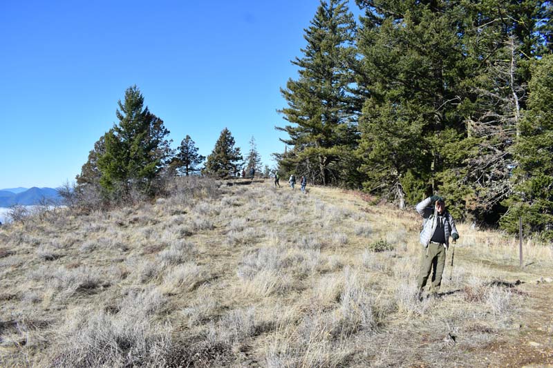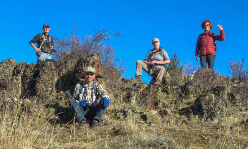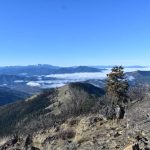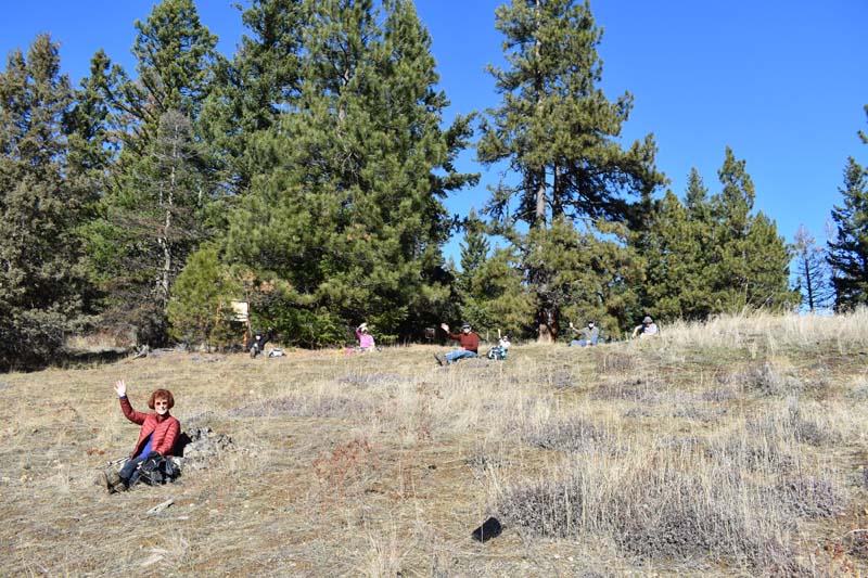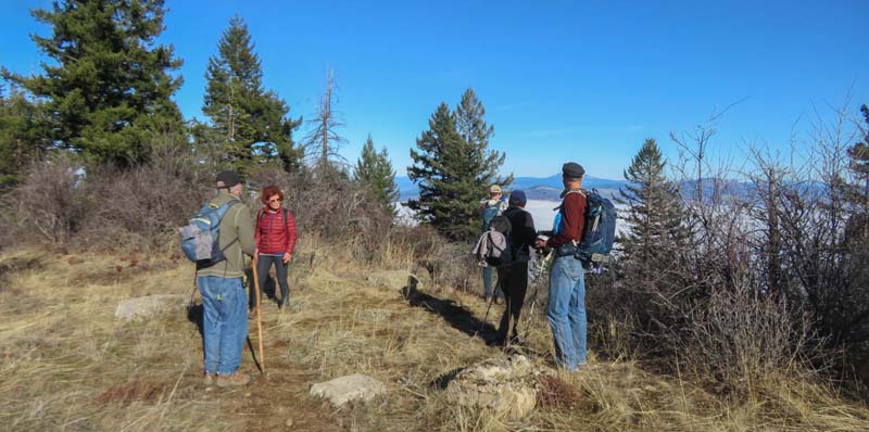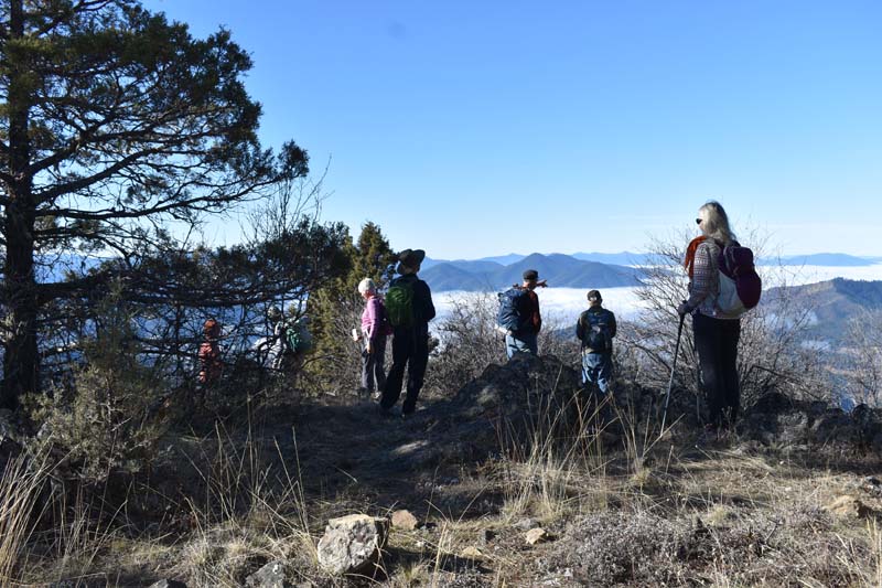 After lunch and returning on the Ridge trail, I gave the group an option for an extra credit hike up to the top of Anderson Butte which added another mile to the hike. Nine of us had great views including snow covered Mt. McLoughlin bursting out of the fog below.
