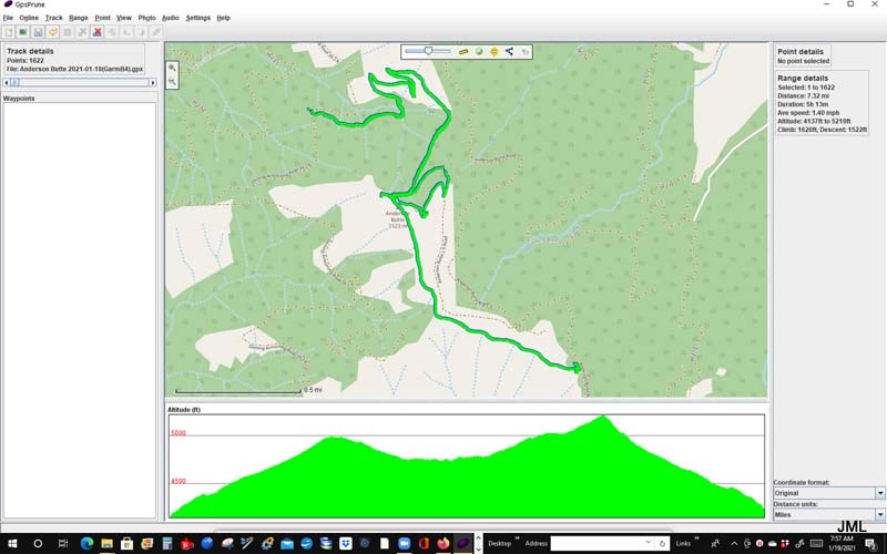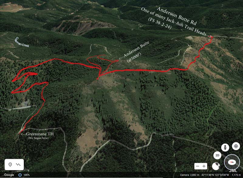 Greenstone to Anderson Ridge plus up to Anderson Butte was 7.5 miles with about 1,000′ of gain.