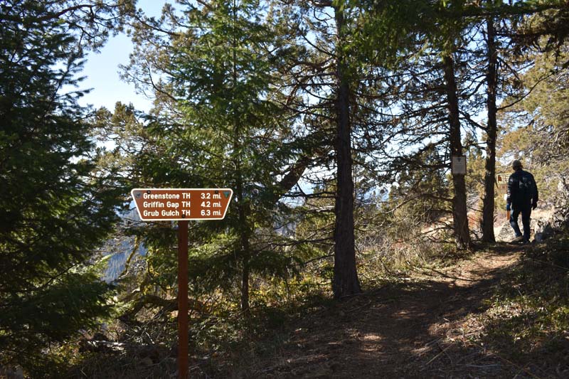The hike starts out with icy puddles and spent cartridges at the parking area and is a steady climb through the broken Serpentine rocks that give the Greenstone Trail it’s name. After about a mile you reach the Jack-Ash Trail post. From there it’s another mile following switchbacks up through the forest as you hike towards Anderson Ridge.