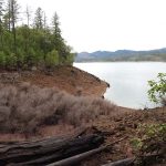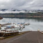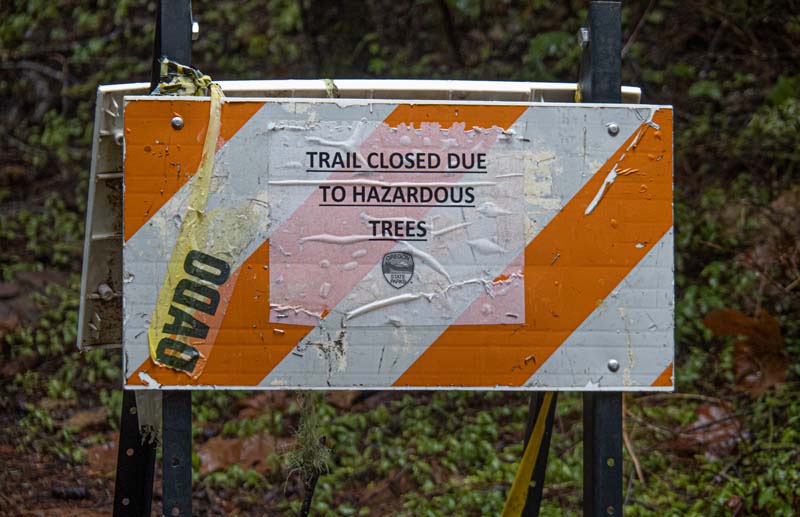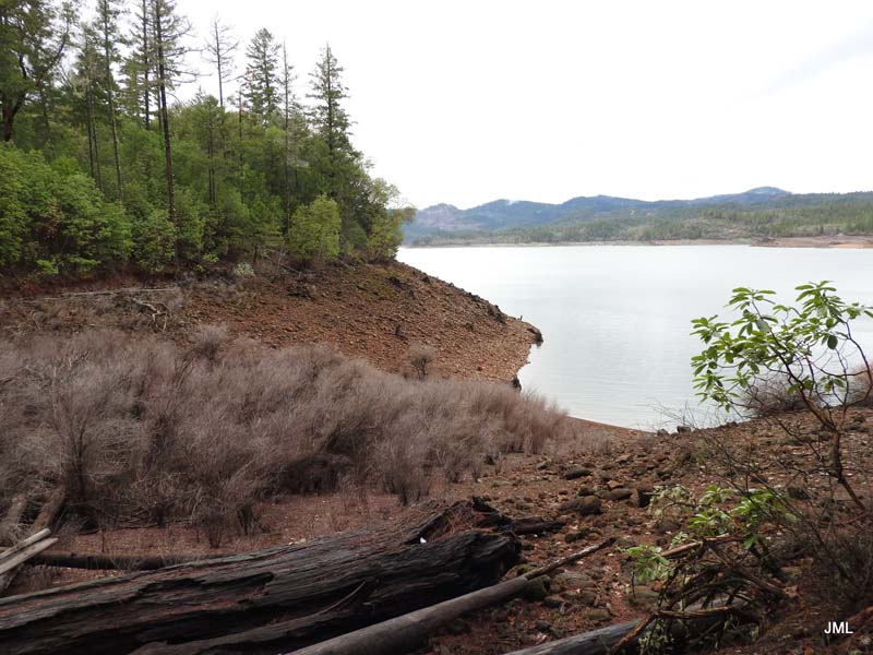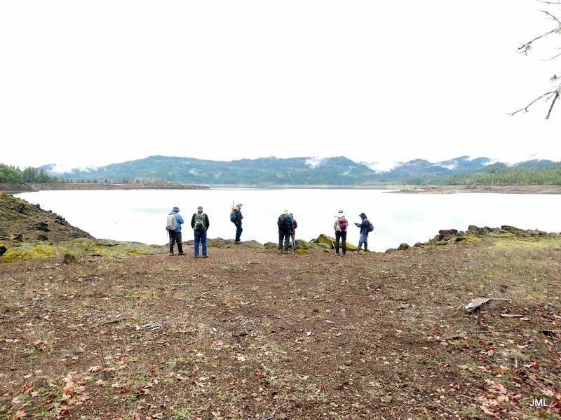Our plan to explore the trail heading past the marina towards the dam was cut short when we found the bridge across Lost Creek was boarded up due to a fallen tree. So, turning around, we headed up the south shore trail and ran into Jerry and our new friend and hiker Gary.