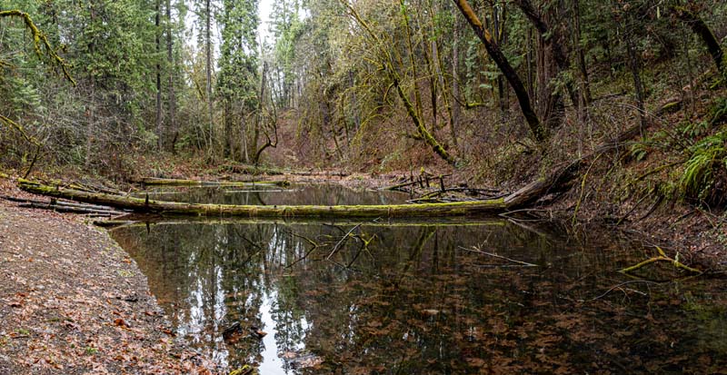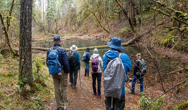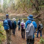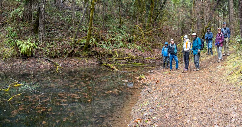 I took the group up to view scenic Diamond Creek Falls which makes a four way split while cascading down the rock face. Right before the falls we found Diamond Creek Pond which is filled by the creek but doesn’t flood as the water seeps down through the bottom of the pond into the lake.