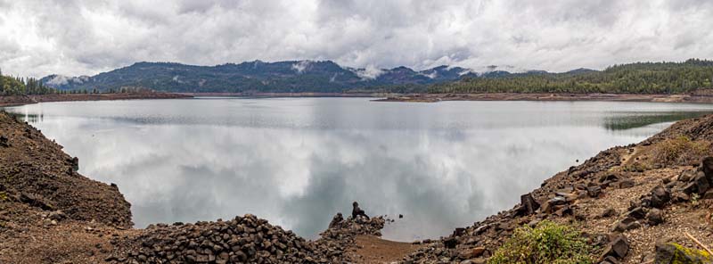 Our hikers luck held through a wild and crazy day on Monday. With a forecast of an 80% chance of rain at Lost Creek Lake, we wore our rain gear including John’s lucky poncho. Lore has it that when John wears his poncho it never rains.