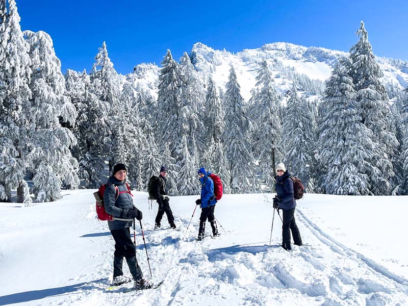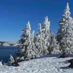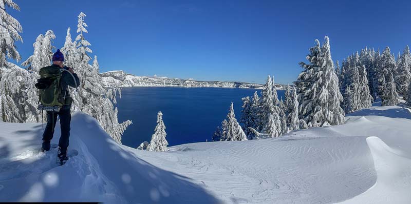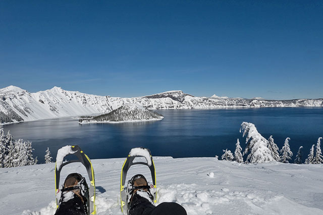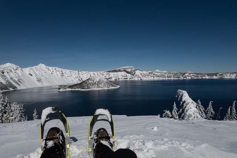 Five of us headed up to Crater Lake to snowshoe from the ranger station at the base to the rim. The road up to the rim was closed and we were early enough to be among some of the first up to the rim.