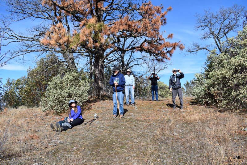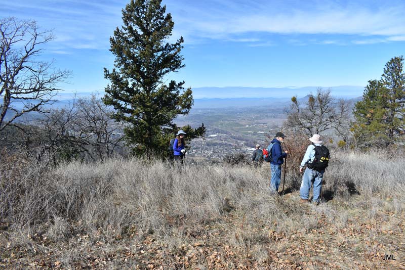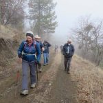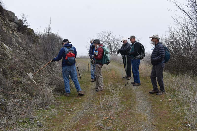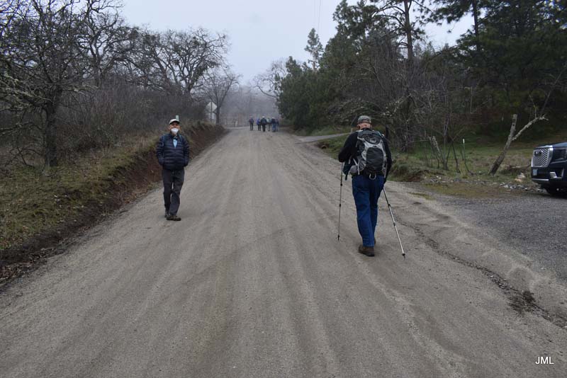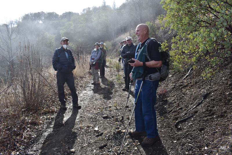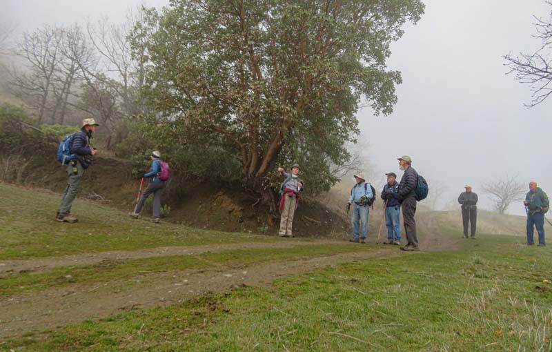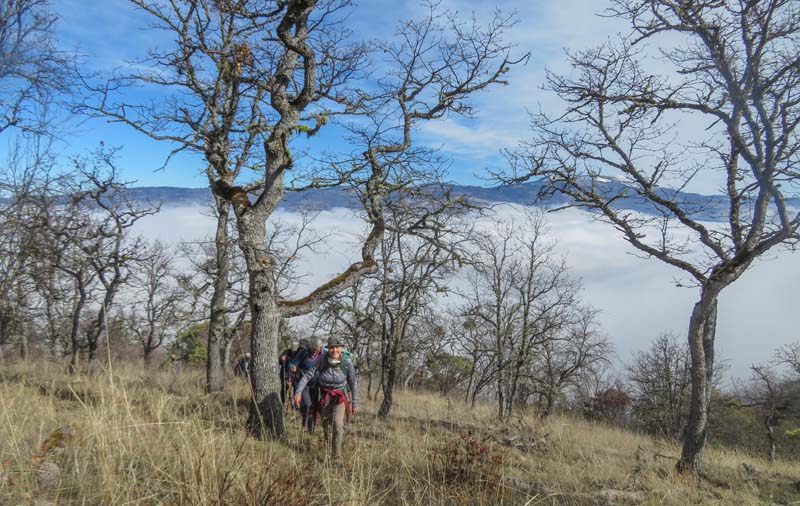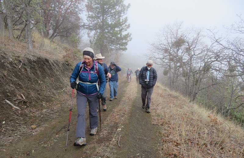 The day started off with thick fog that lingered until lunch time but finally did burn off to reveal great views down into the valley. Our bundled hikers were also rewarded with afternoon sun and temps of 55+ degrees.