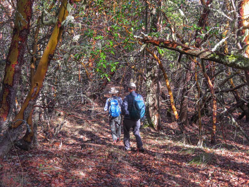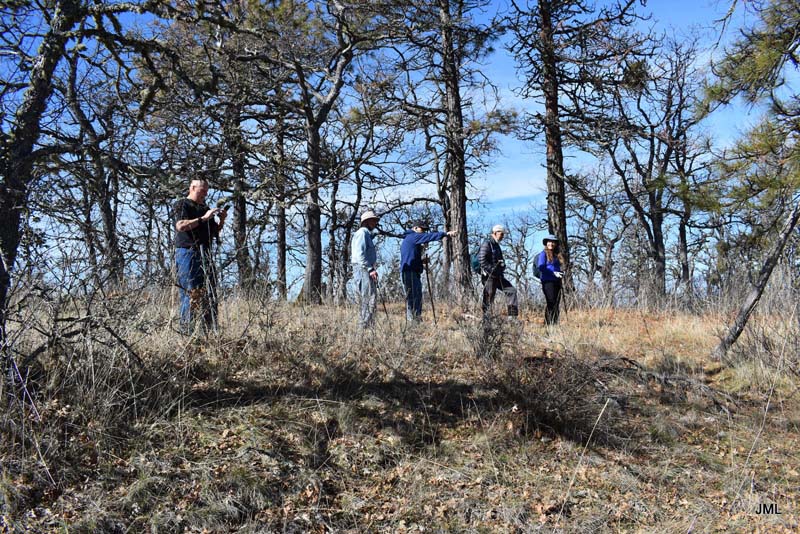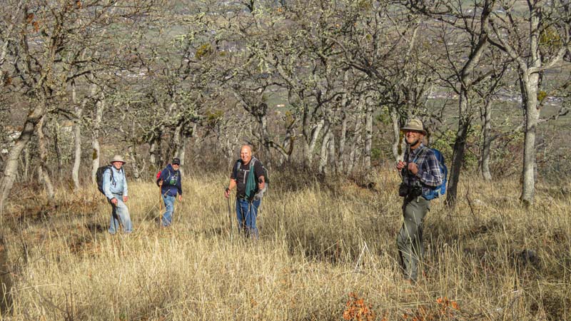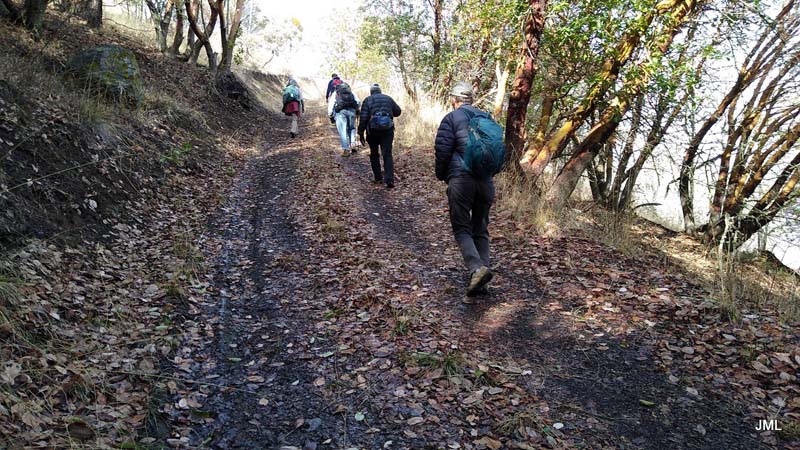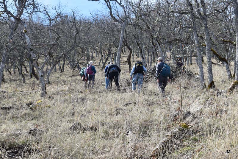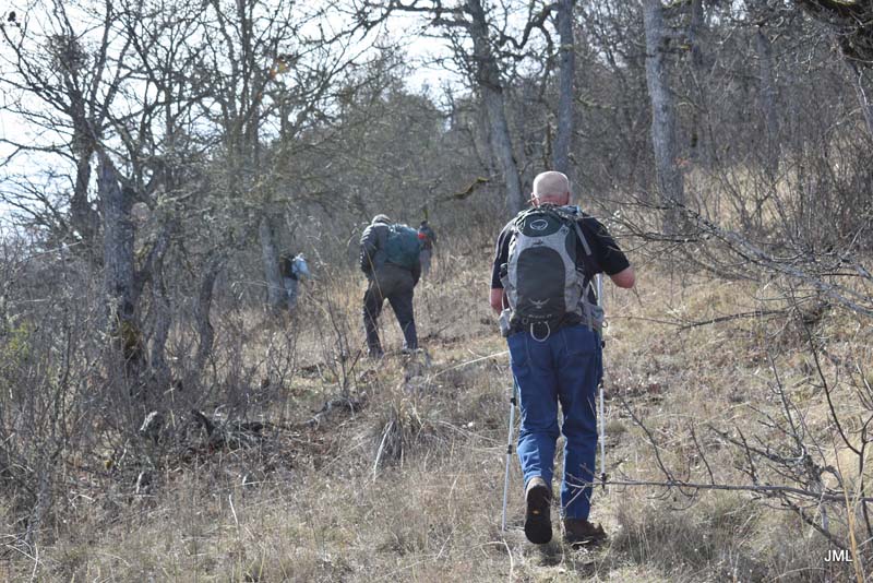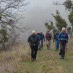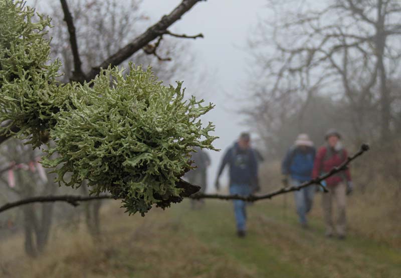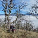 The day started off with thick fog that lingered until lunch time but finally did burn off to reveal great views down into the valley. Our bundled hikers were also rewarded with afternoon sun and temps of 55+ degrees.
