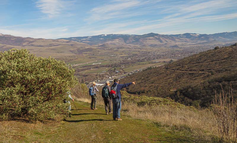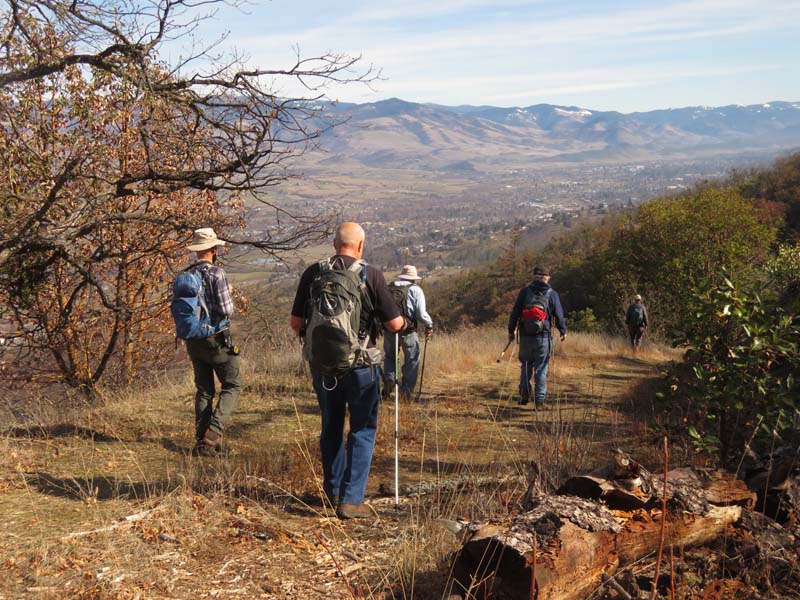This new hike starts on a paved road but eventually narrows down to animal tracks as you rise into the hills above Ashland. The steady climb can be taken in sections with stops for wardrobe adjustments, water and just to catch your breath.