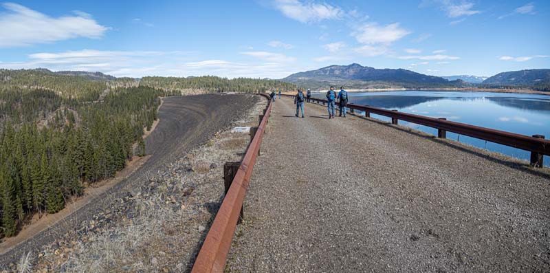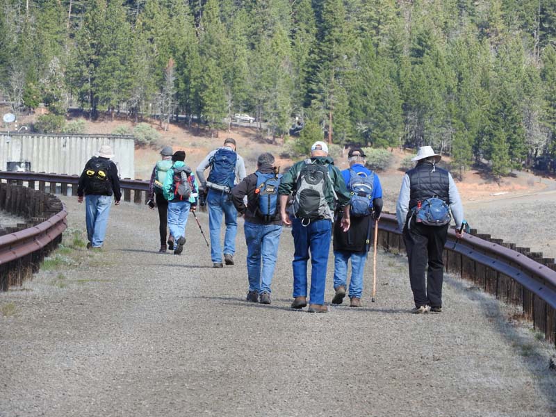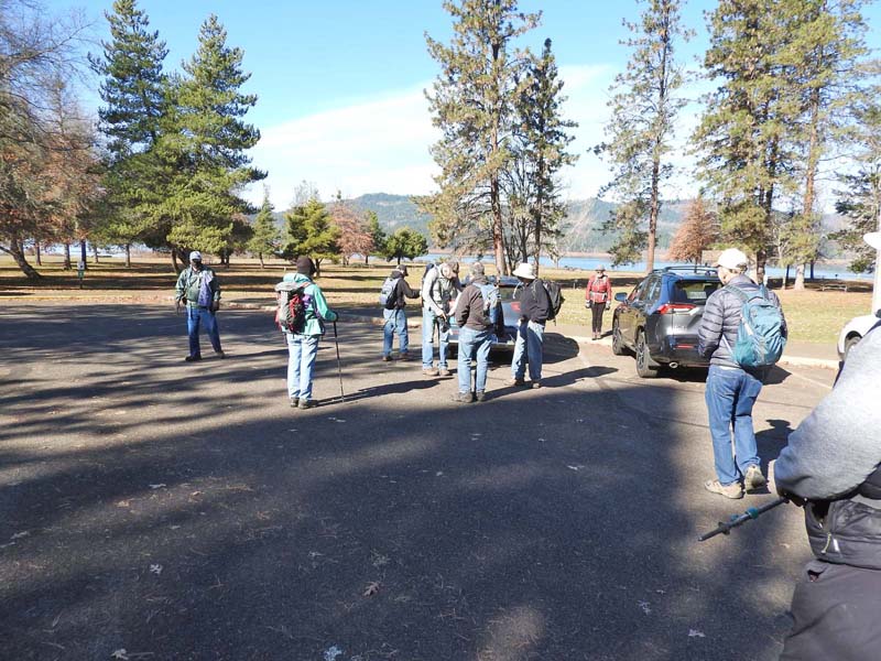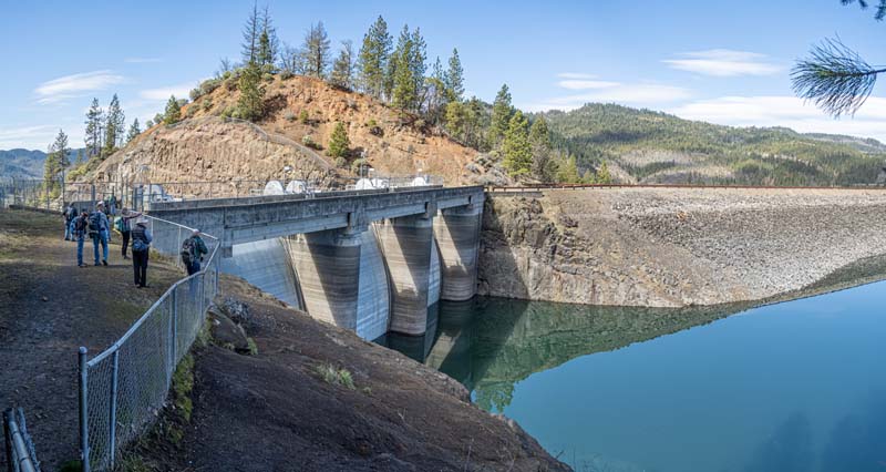 Nine grizzled hikers and Liz gathered at the Joseph Stewart Park marina TH to complete the south shore trail of Lost Creek Lake down and across the William Jess Dam. This 7.7 down and back is another New Hike for us.
