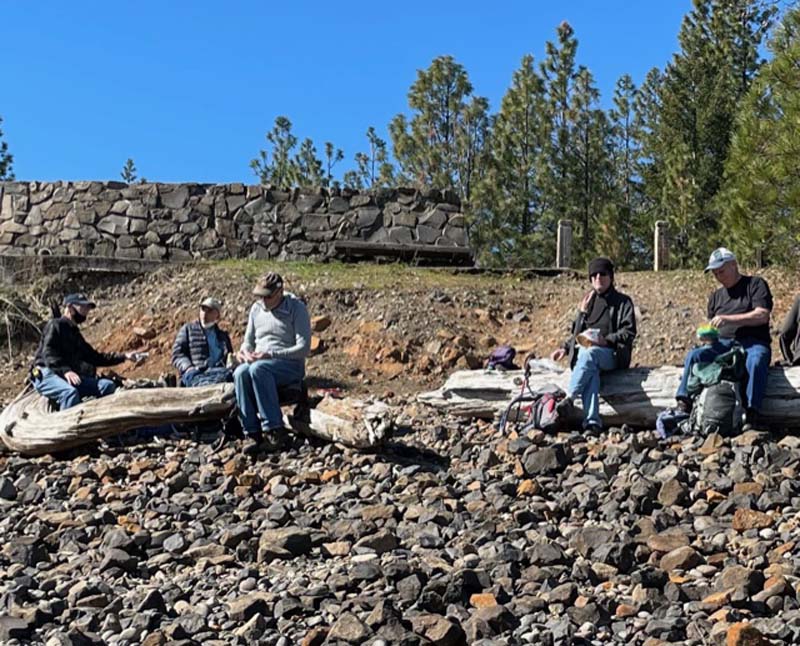 We walked one mile across the dam for lunch on logs on the far side. After lunch in the mild sun, we headed back and seven of us stopped at Phil’s Frosty in Shady Cove for ice cream.