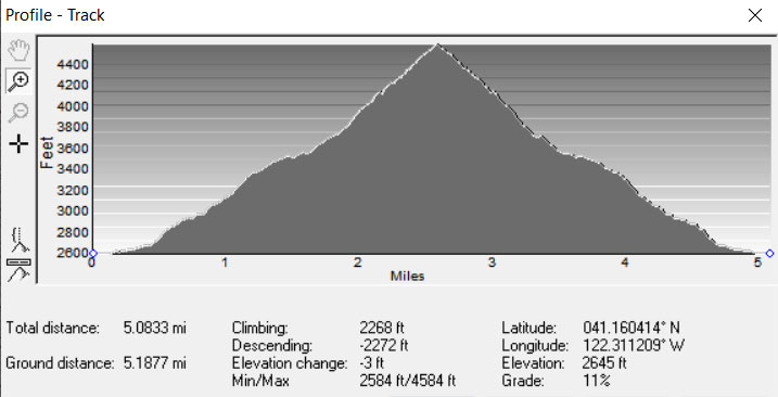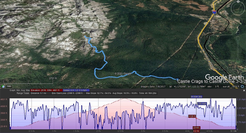 This is one of my favorite hikes, mostly due to the great views once you get about half way. We could see Mt. Shasta and all the rocks associated with the Castle Crags. However, although the hike is just over 5 miles and 2,000 vertical feet, getting to the top is not an easy task with some large rock and bouldering effort needed.