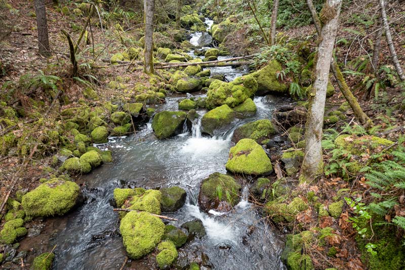 The views were spectacular (pictures never show the emotional impact of the landscape). Bright green moss contrasted against red rocks and blue-green water. Although it was drizzling most of the time, we were mostly in the forest, so it was not an issue. We all had very colorful backpack covers (that’s how you can find 2 people in the deadfall piles) so things were always dry.