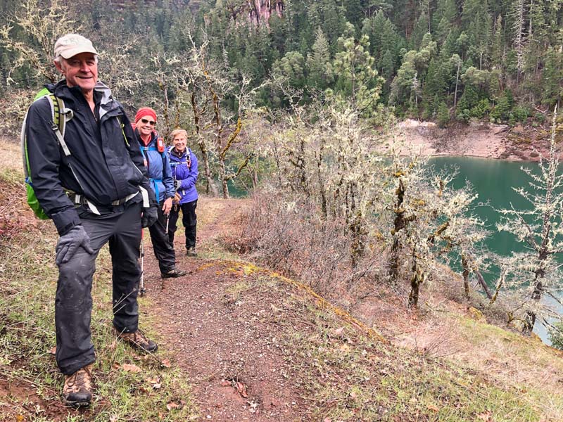 Four of us headed to the north end of Lost Creek Reservoir to hike up the Rogue River on the Peyton Bridge Trail. I’ve hiked this a few times in the distant past but stopped due to lots of deadfall. I had heard rumors that some clearing had been completed, so we took a chance.