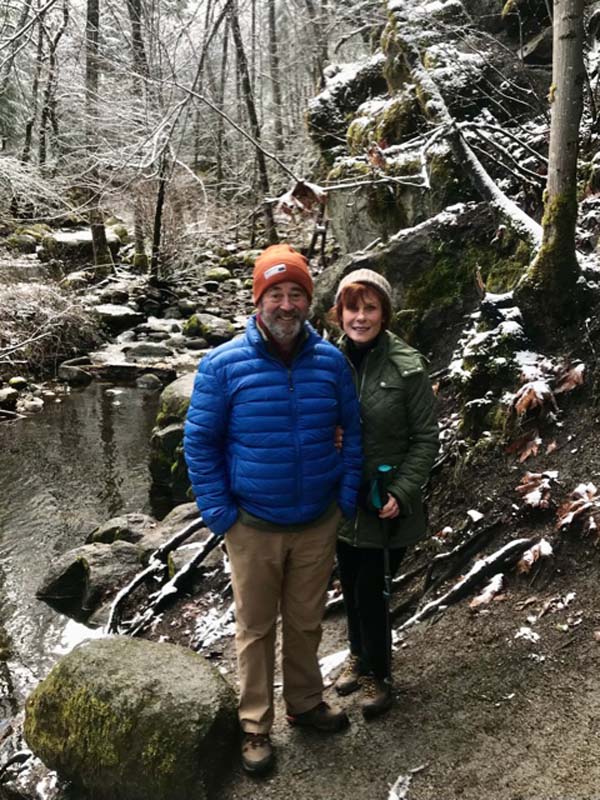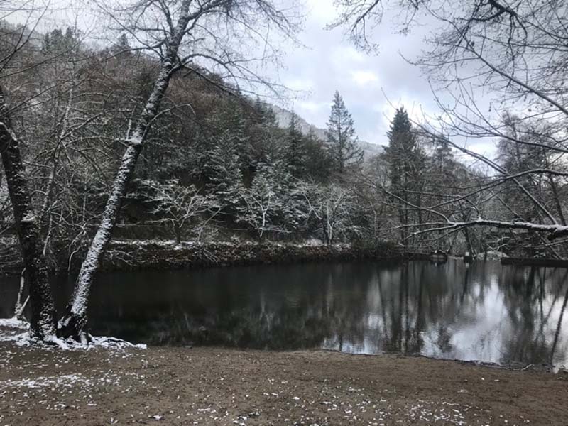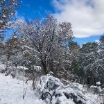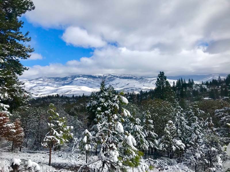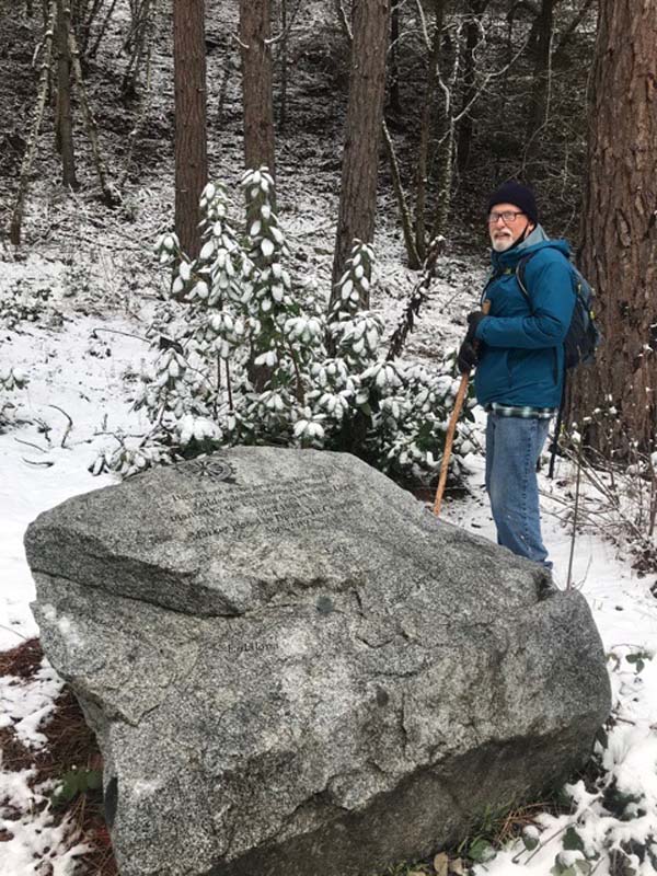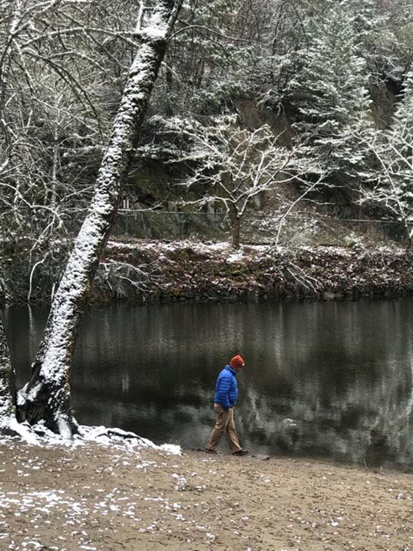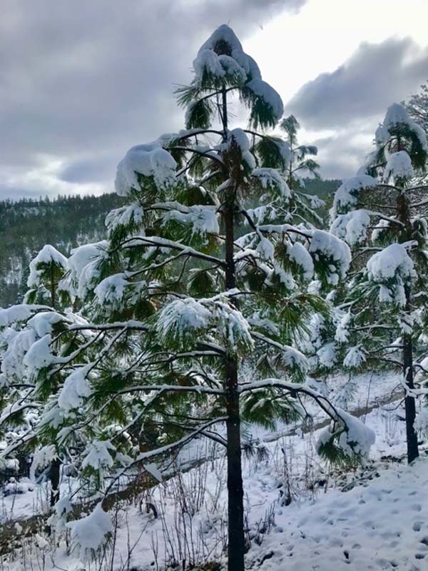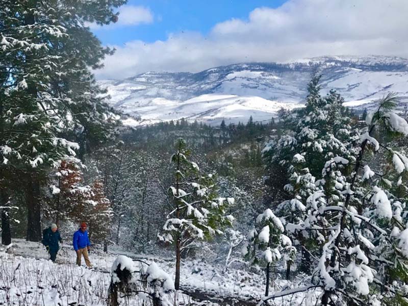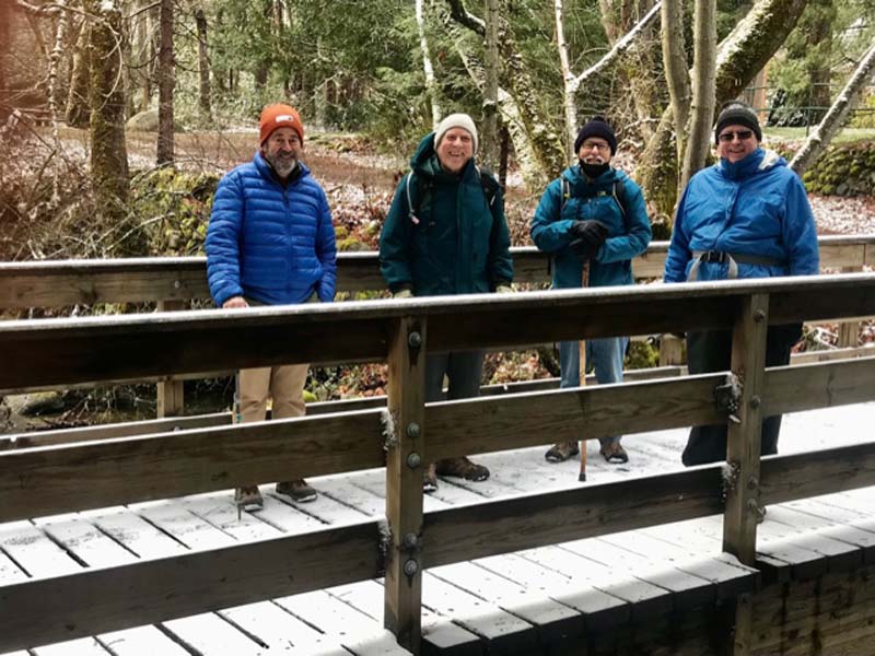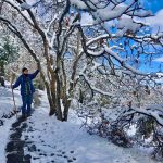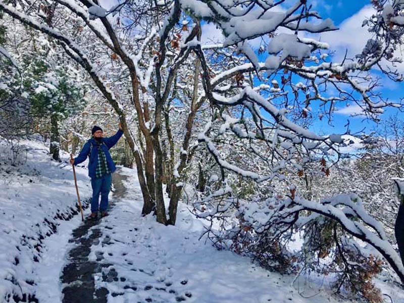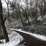 Five hikers took advantage of a winter surprise to walk in Lithia Park and hike up the New Wonder Trail. Darryl drove up in his snowcovered Honda to join John and I near the bandshell; while Sunny and recently retired Mike walked up from their house.
