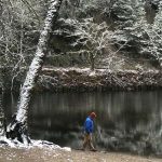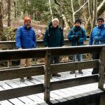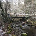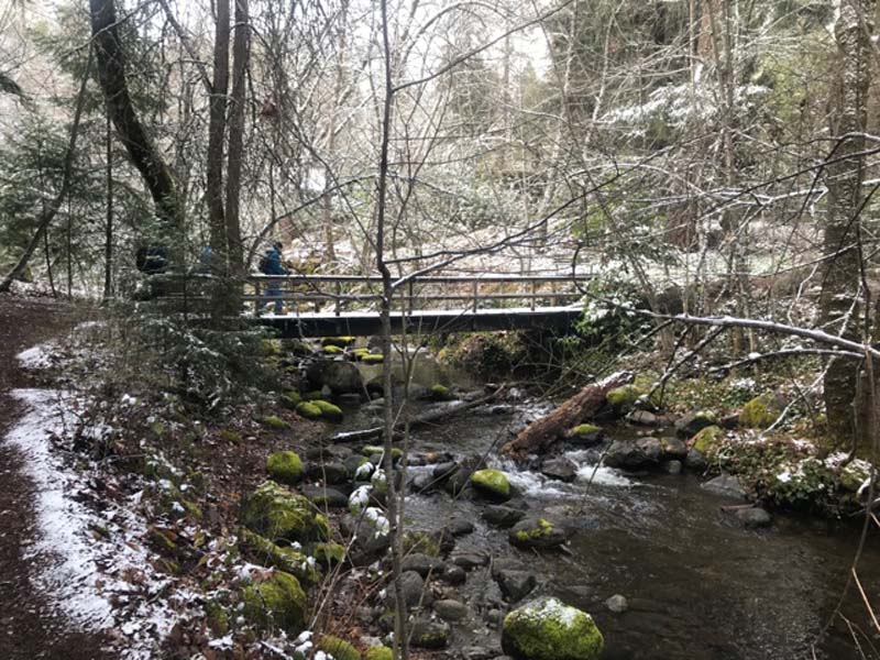The day started chilly but sunny as the overnight snow brightened the park. New buds and fresh spring growth highlighted the shrubs and trees. We walked down to the park entrance and up through the park crossing snow covered bridges along the way.