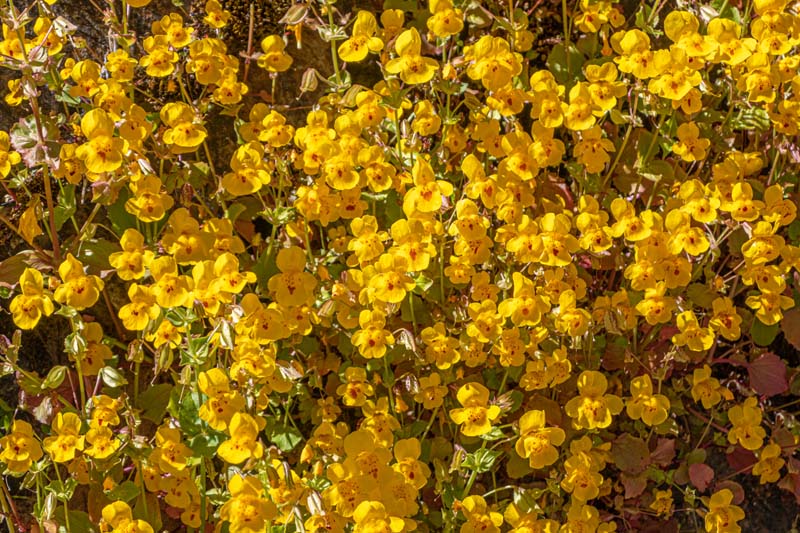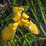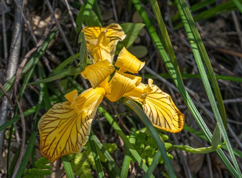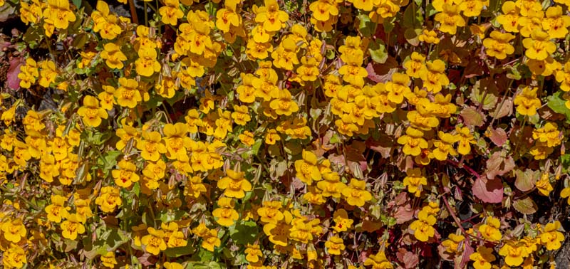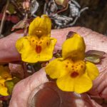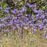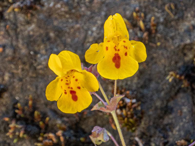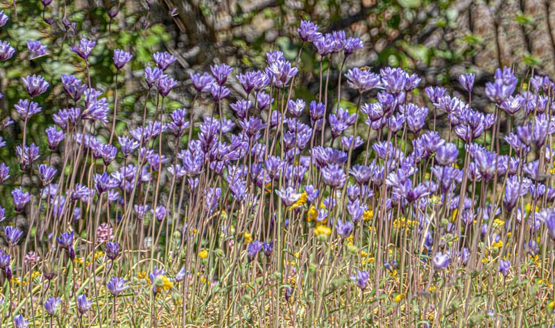 The posted flowers, in order, are: the yellow Monkey Face (seep Mimulus) growing enmass on the canyon wall; close ups of Blue Camas, Monkey Face, Indian Paintbrush and shiny oily Poison Oak. Then a rare sighting of the Del Norte yellow Iris and finally a field of Blue Dicks. Some but not all of those flowers not pictured were: the Woodland Madia (a yellow Aster), Red Larkspur (Delphinium), Western Buttercup, Fiddleneck, Rosy Plectritis/ Spring Blush, Scarlet Fritillary/ Red Bell, and Western Wallflower. April is definitely prime time to see wildflowers on the Lower Rogue.