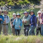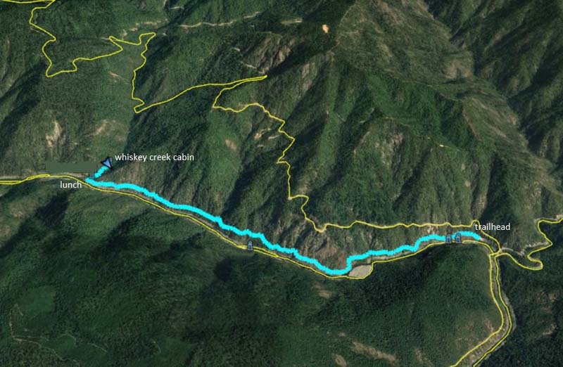 When we got to our lunch destination, most of us enjoyed a sunny, sandy spot on the river next to Whiskey Creek. But some did some further exploring up at Lou Martin’s historic “Whisky Cabin”.