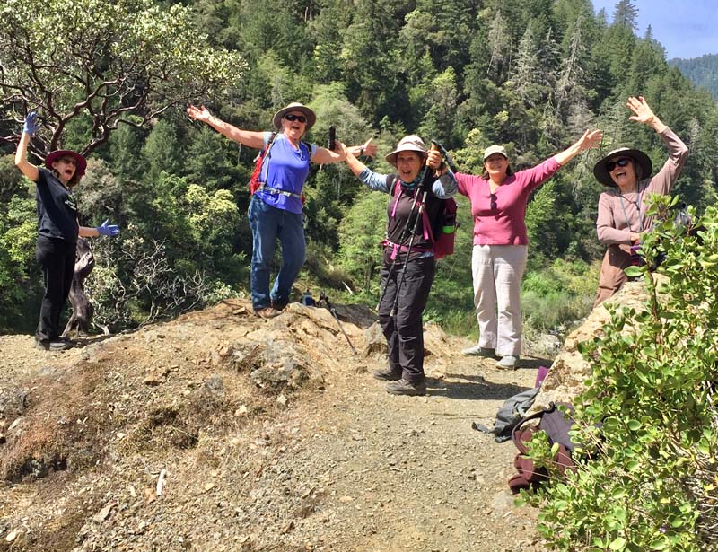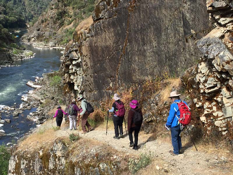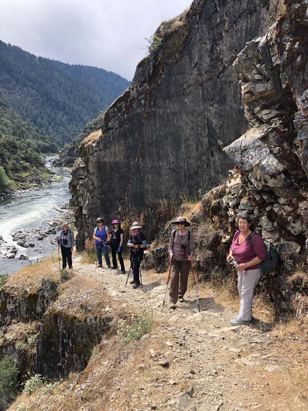 Joan, MaryAnn, Peggy, Cindy, Jackie, Kay and Elisabeth enjoyed a six-mile RT hike on the Lower Rogue Trail in perfect weather and amidst the abundance of wildflowers. Watching and waving to rafters navigating the river creates a special sense of ‘river community.’