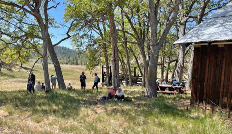 Then it was back to our dusty cars and back up Copco to the left turn off for Box O Ranch. The cattle ranch was active from 1983 until 1995 when BLM took over the property in a land swap with the owners. Now the land, still with the old ranch house and barn, is available for hiking the 5 mile loop around the pasture which is bordered by Jenny Creek.