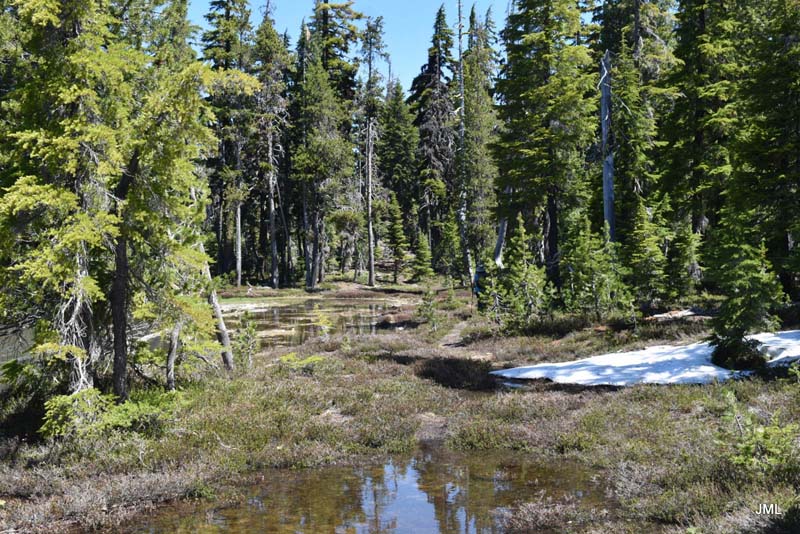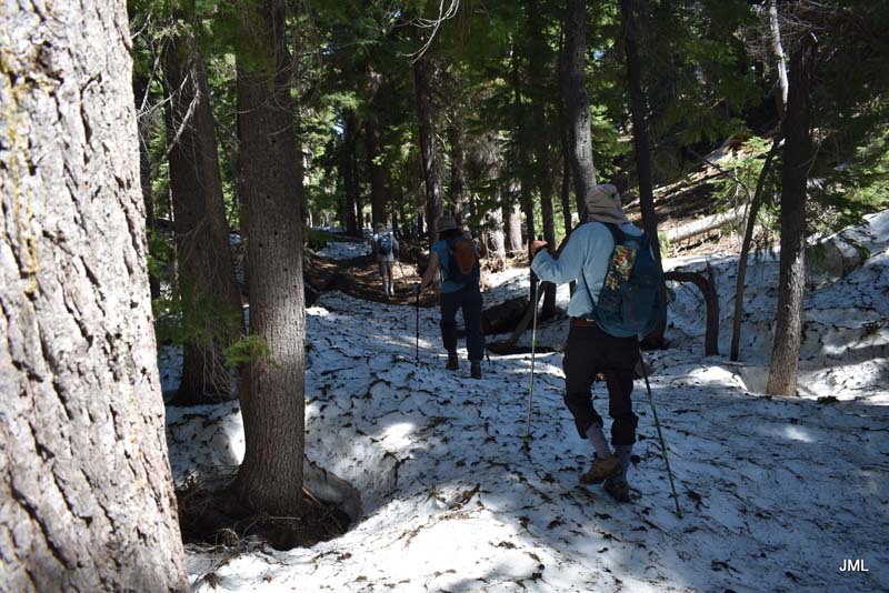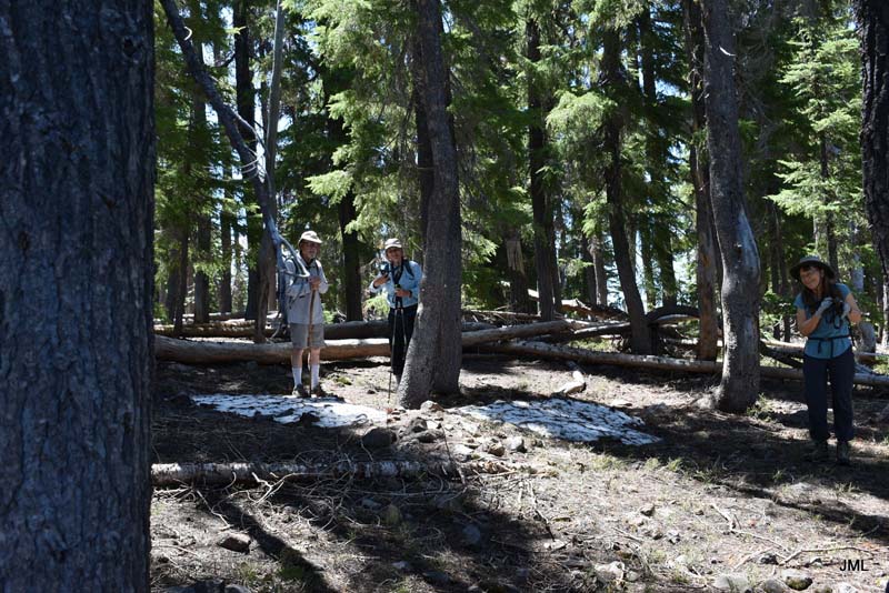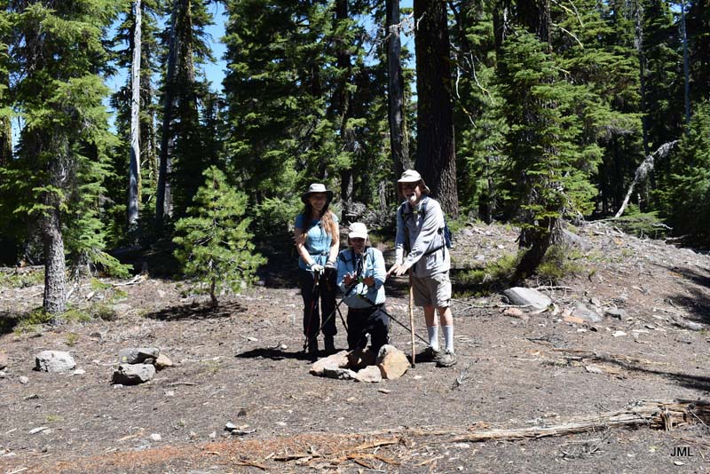 Heading back after lunch we would have completed 6+ miles and 500′ of gain in this first hike in the High Cascades.