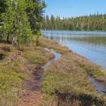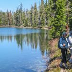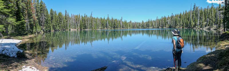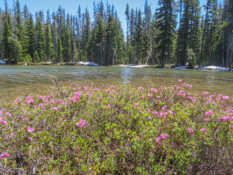 The trail starts off in a dry creek bed then continues up into cool forests for a mile until it flattens out on top at 6,500′. It’s just 2.5 miles out to the first Puck Lake at that same elevation.