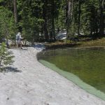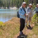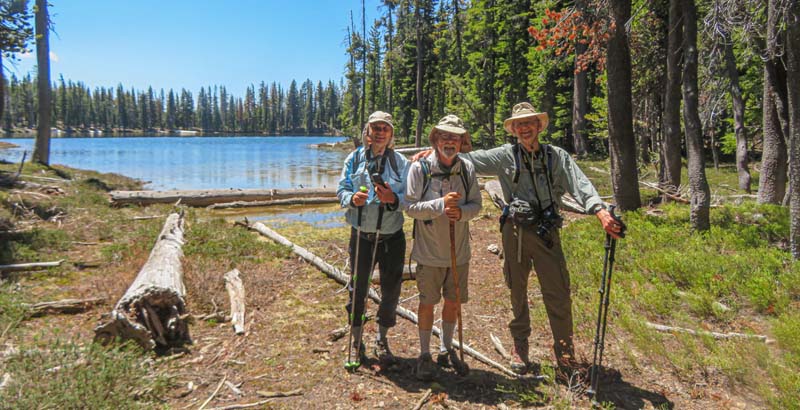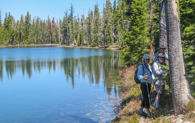 These pristine mountain lakes feature clear water, jumping trout, flowers along the shoreline, big trees all around and a view of snow capped Devil’s Peak in the distance. We can add another mile to the hike with a circuit of Big Puck Lake. We can stop at the top of the circuit for lunch and a view of Little Puck Lake.
