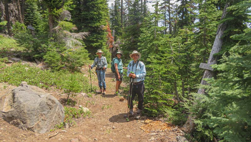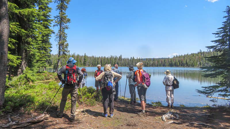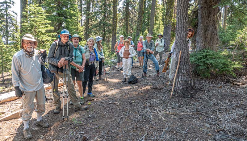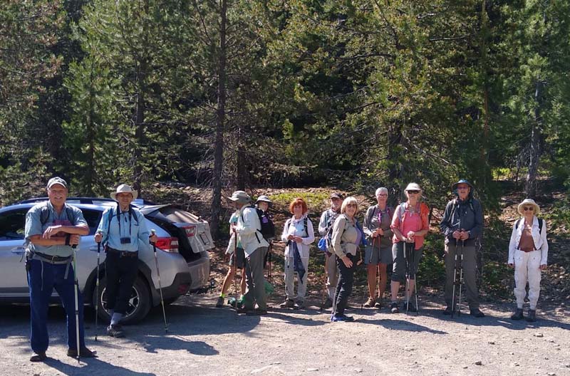 My mosquito warnings might have scared away a few hikers, but we still had a baker’s dozen for our 8 am departure to the High Cascades. With an Ashland high forecast of 100o, we opted for higher elevation and cool mountain lakes.