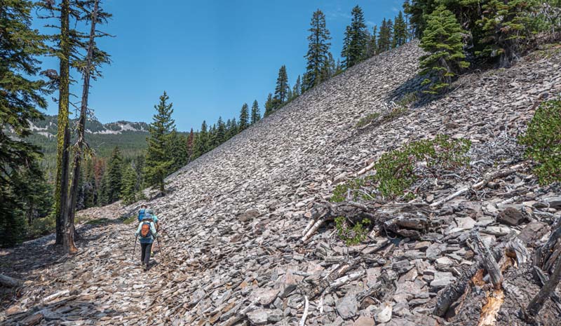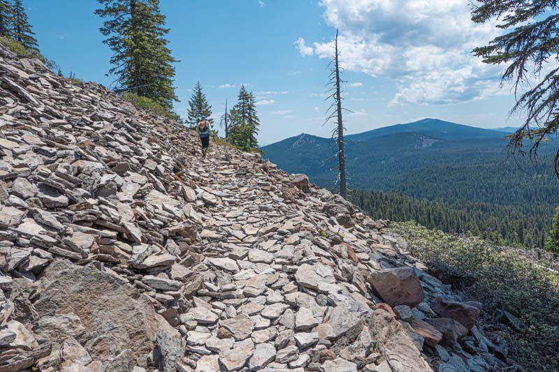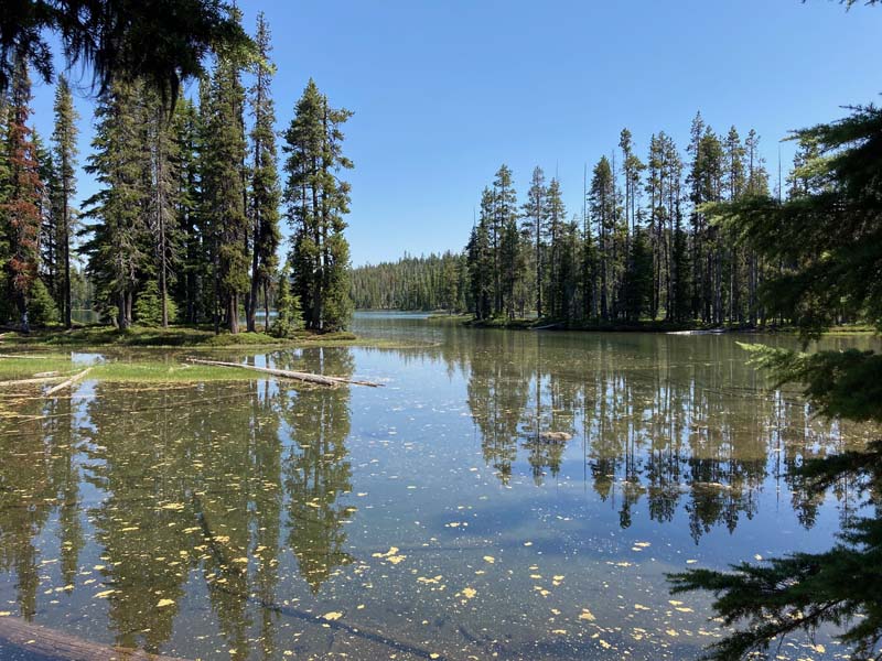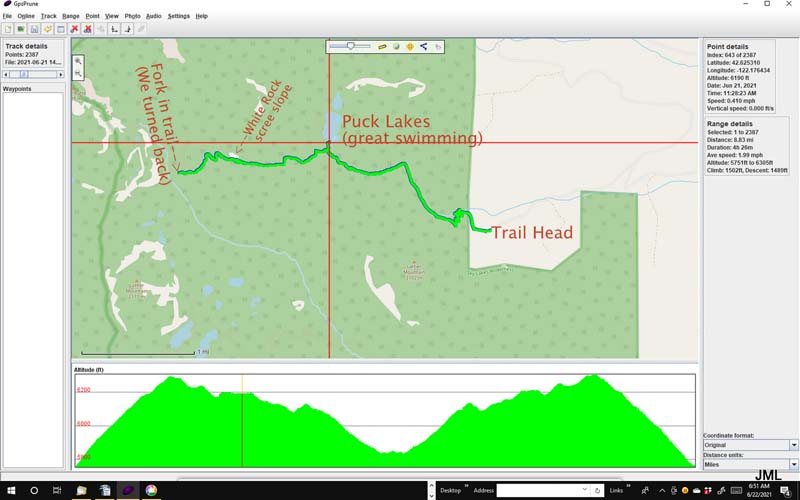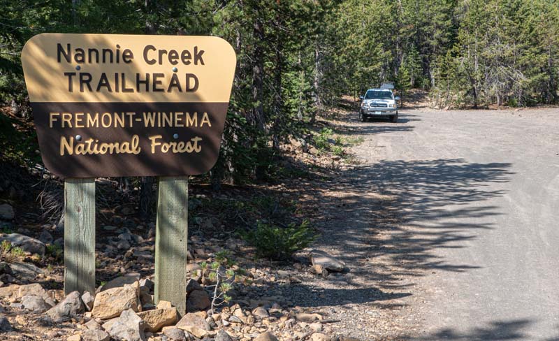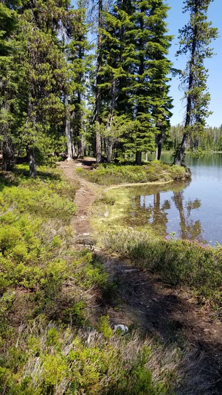 Our destination was the Puck Lakes on the Nannie Creek Trail in the Fremont-Winema National Forest. An 1 1/2 hour drive with another 20 minutes added for two road project stops. We got to the TH just before 10 with clear skies and 75 degrees.