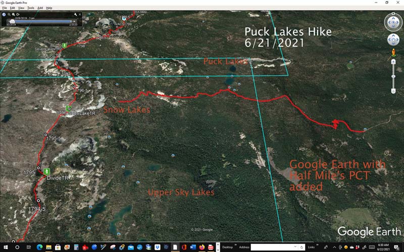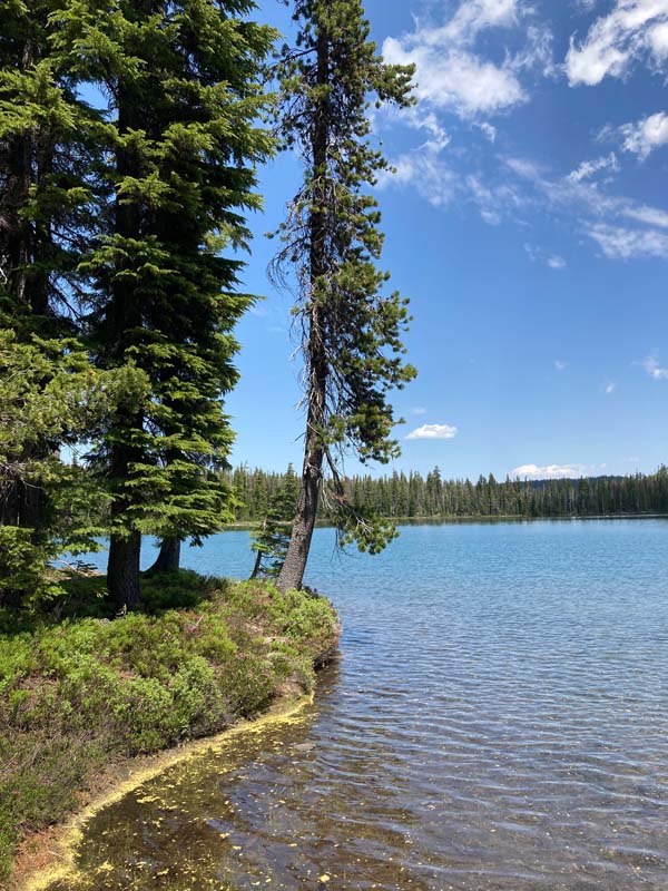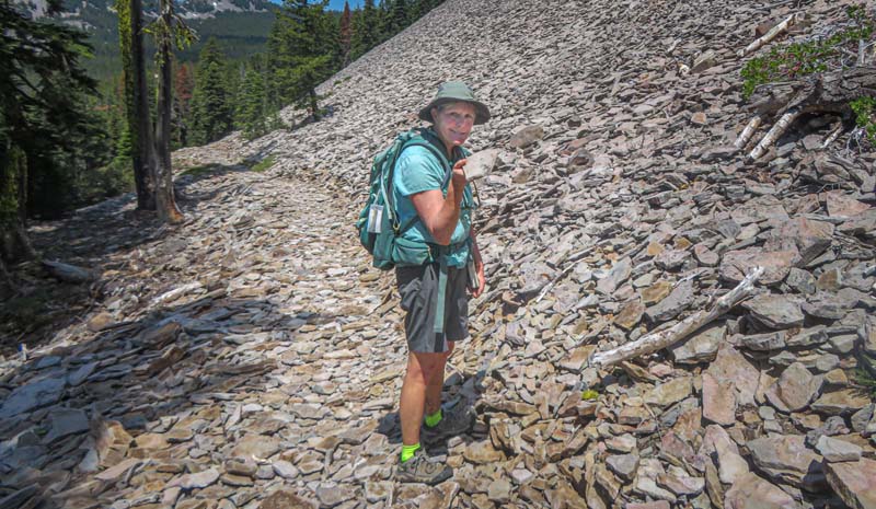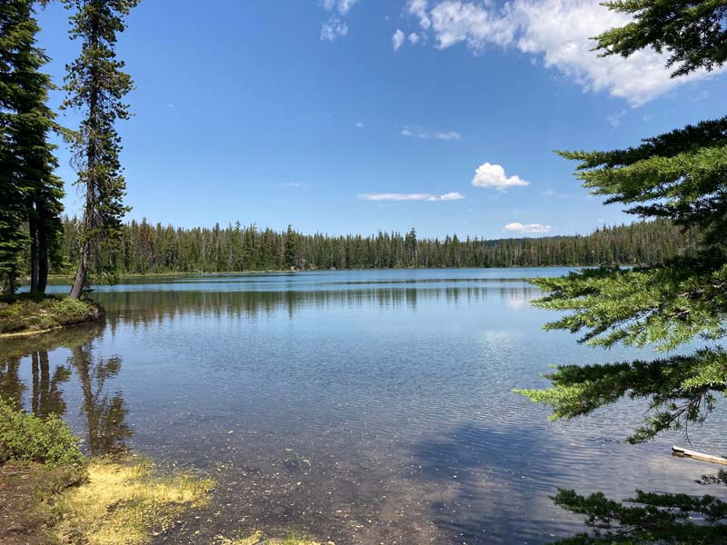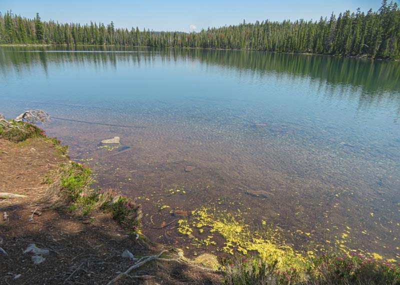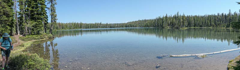 This new hike is available to all AHG members and is an introduction into the High Cascades above the Sky Lakes Wilderness. we may do more hikes in this region in late summer and fall. Today’s was 6.7 miles roundtrip with a gain of 500′ mostly coming up from parking on a dried creek bed and then up into the cool forest before reaching the top and about two mostly level miles to the lakes.