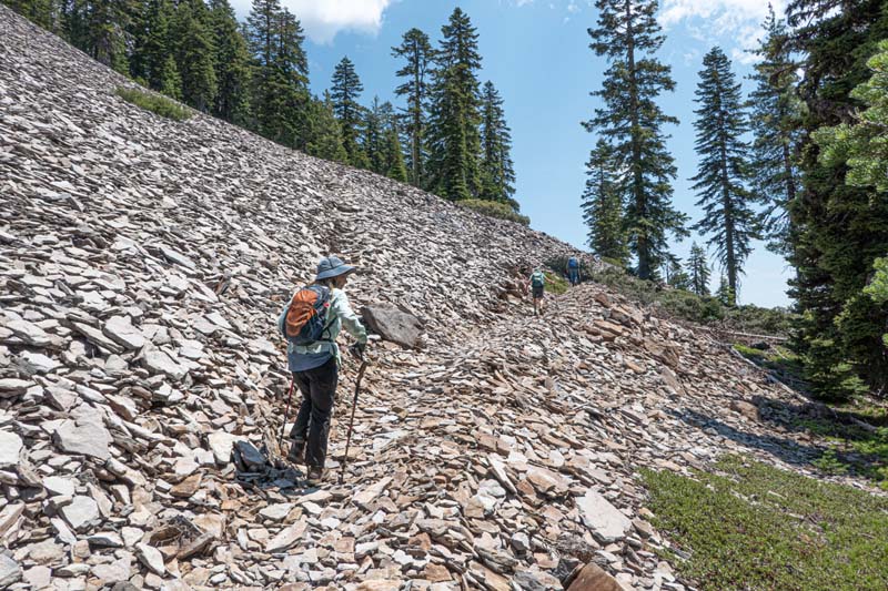 This new hike for the Monday group had been scouted on June 3 and reports could be found in the Wednesday archives. During the scouting hike there was patchy snow on the trail, but all of that had melted away by Monday.