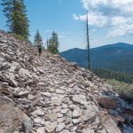 We had beat the heat of the valley and avoided multiple bug bites, but we were still in for a couple of surprises. When we arrived at the shore of Lower Puck Lake our lead scout announced he wanted to explore further up Nannie Creek Trail in search of the rocky viewpoint, so off he went with three followers.