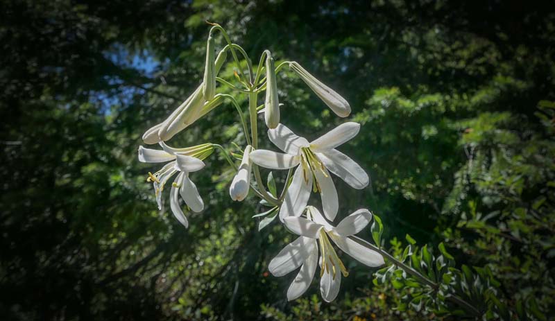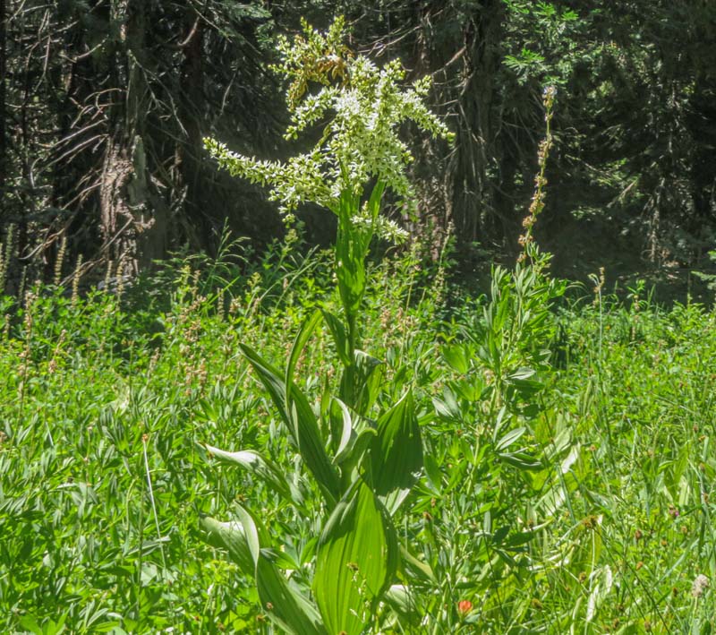 The trail starts uphill through forest on a rocky path then drops down into the Fir Glade which was featuring blooming Corn Lilies.
