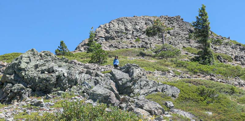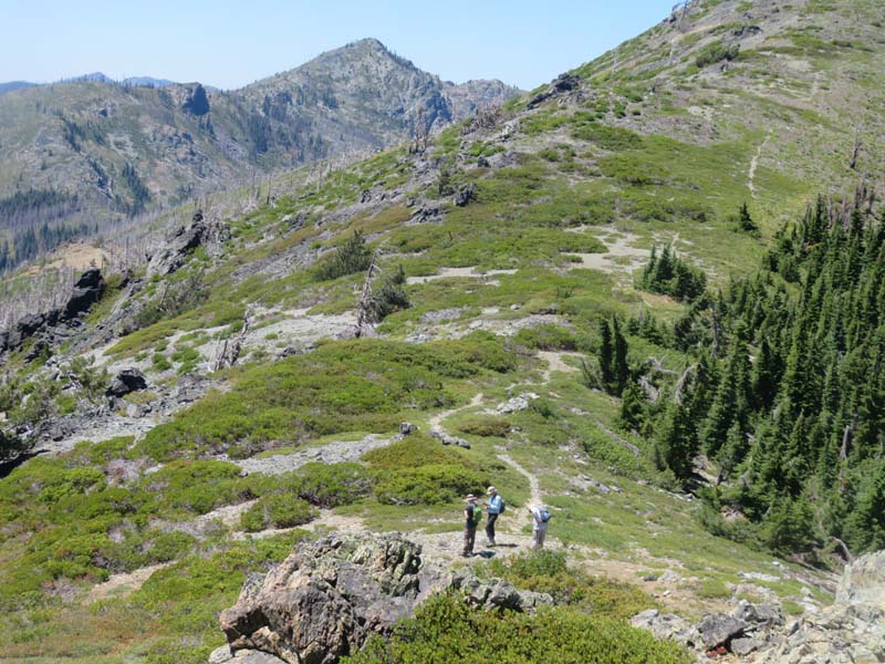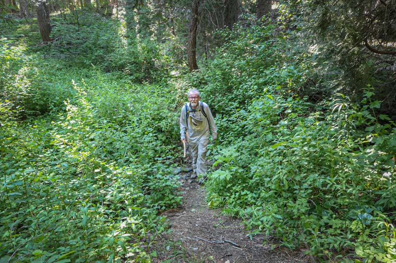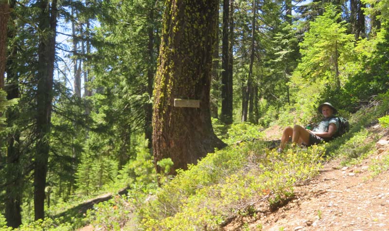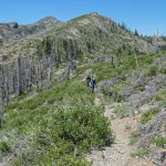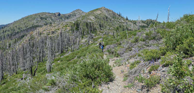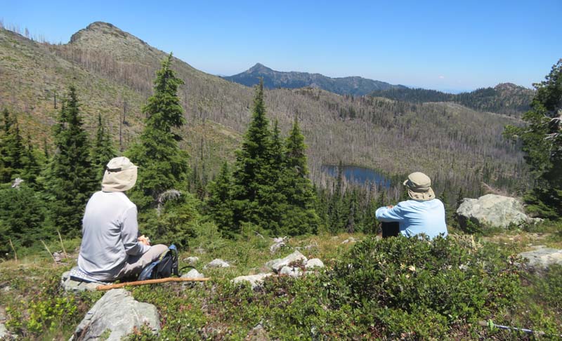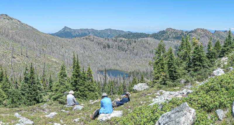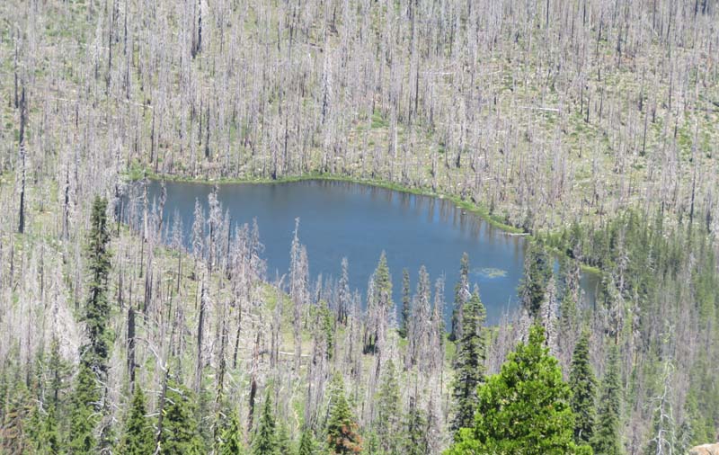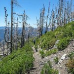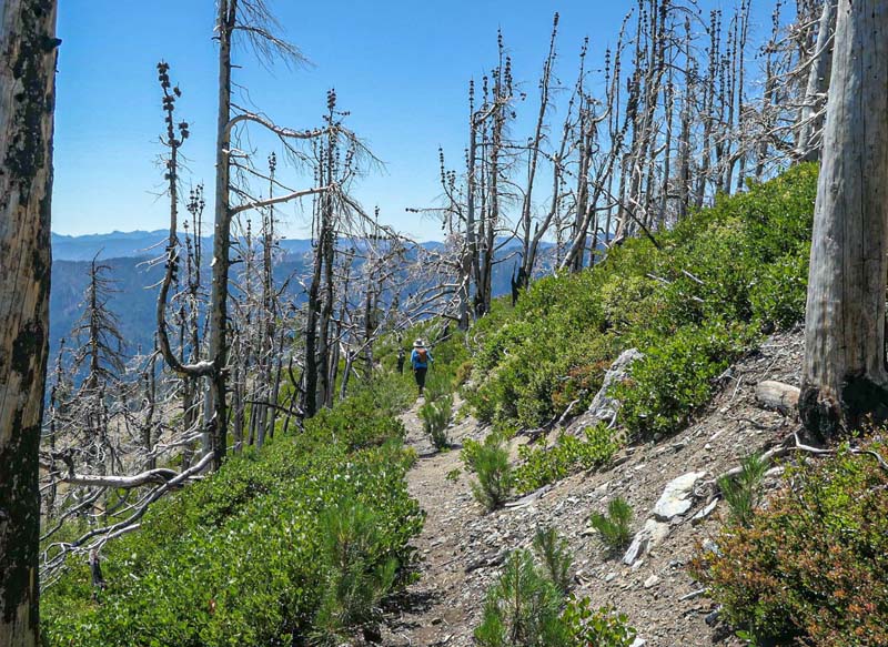 The remaining 4 completed the last mile up to the overlook at 6,000′ and had a cool and constant breeze to help them up. There’s still plenty of evidence from the Miller Complex fire that burned up the hillside and around most of Azalea Lake, but green groundcover is growing up between burnt trees.