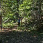The trail makes a right turn coming out of the glade, then makes a slow but steady ascent up to the ridge that goes out to the lake.