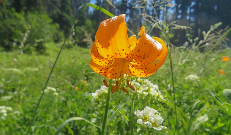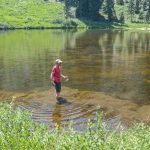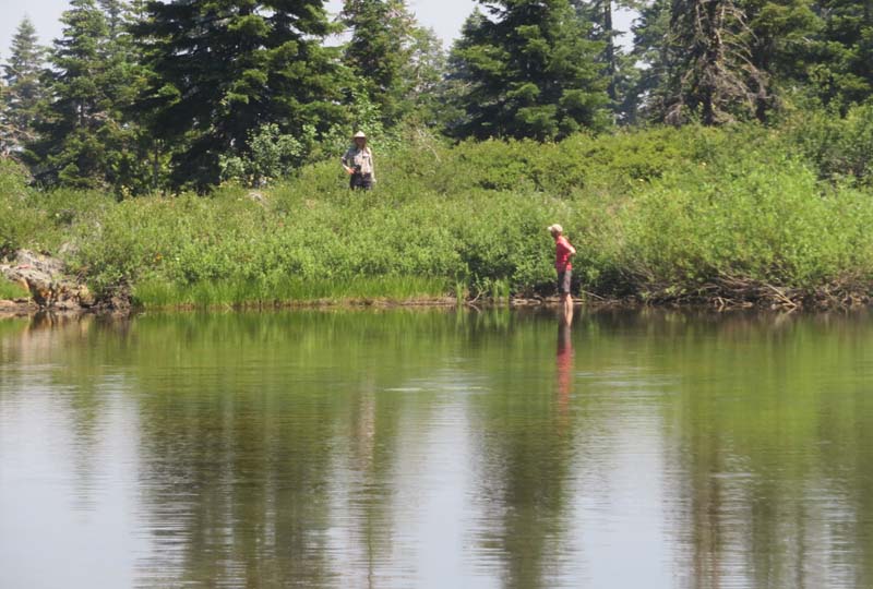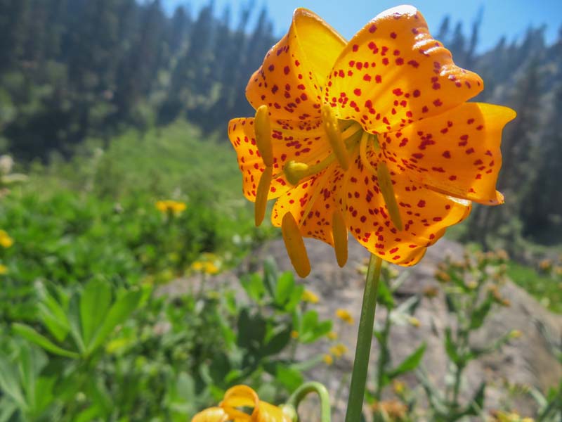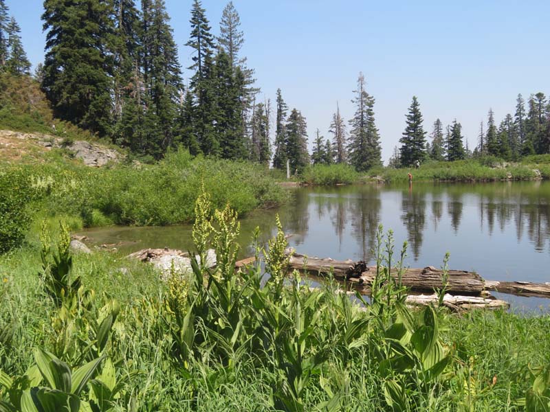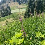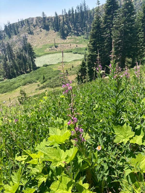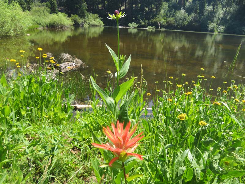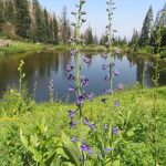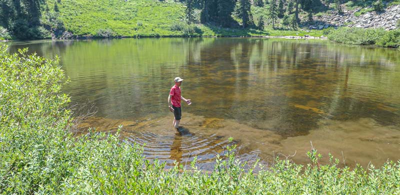 After lunch I radioed the lake explorers that I would take the other two out to see Lily Pad Lake. The timing worked out well as it’s about another 1.5 miles out to Lily Pad Lake and that gave the Echo crew plenty of time to splash their feet in the muddy lake bottom and take more great flower pics around Echo Lake.