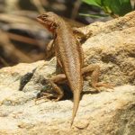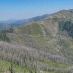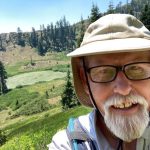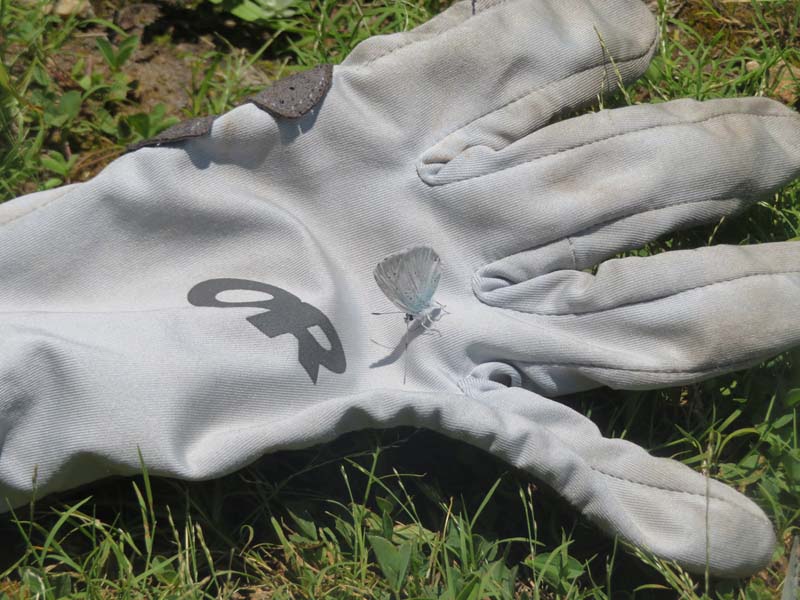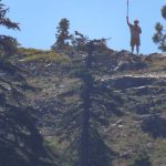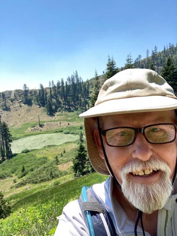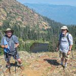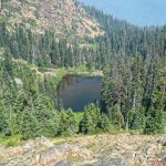 The Echo Lake overlook at 5,835′ is our usual lunch spot, but on this day things were a little different. First the updraft from the lake 370′ below was blowing at near 30 mph, then Linda and Jerry decided to go try out the lake and were followed by Randy. Back on top we remaining three decided to move off the overlook and away from the wind and had our lunch.