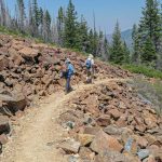 Three folks were camping by the PCT TH in front of a big white van that carried supplies to refuel the through hikers that came down the Pass. These “Trail Angels” are a welcomed sight for PCT hikers who are finally finishing their long stretch in California and are greeted as they head to Oregon. Our group met 8 through hikers this day on the PCT.