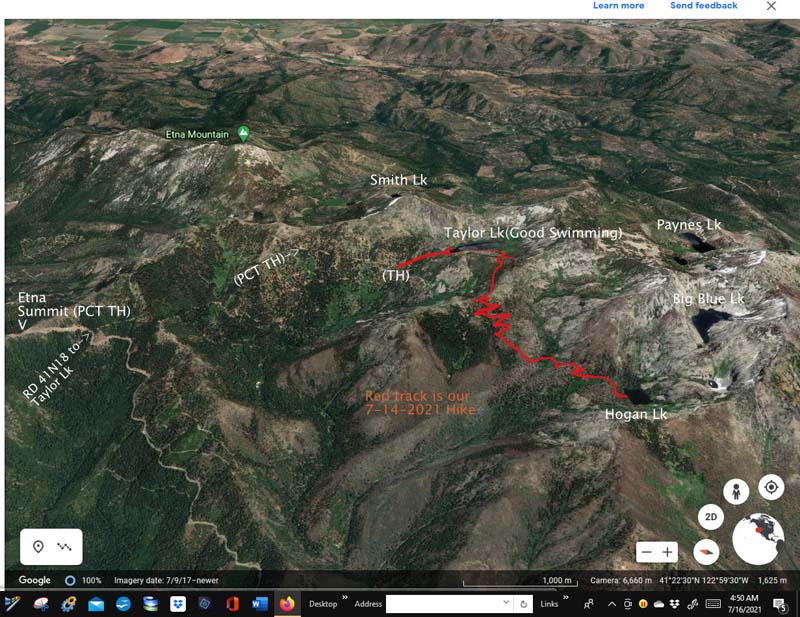 Your scouting team had been thinking about exploring the hike from Taylor Lake to Hogan Lake just west of Etna Summit in CA since February 2020. Finally on Wednesday morning it all came together and we hit the road to Cali at 7:30 am. We left the Rogue Valley heat and smoke behind and headed south into what we were not sure. But by the time we made the turn off at Yreka for Etna south on CA-3 we could see the majority of smoke in Northern California was east of I-5. Visibility was good west of the Etna summit for about half a mile.