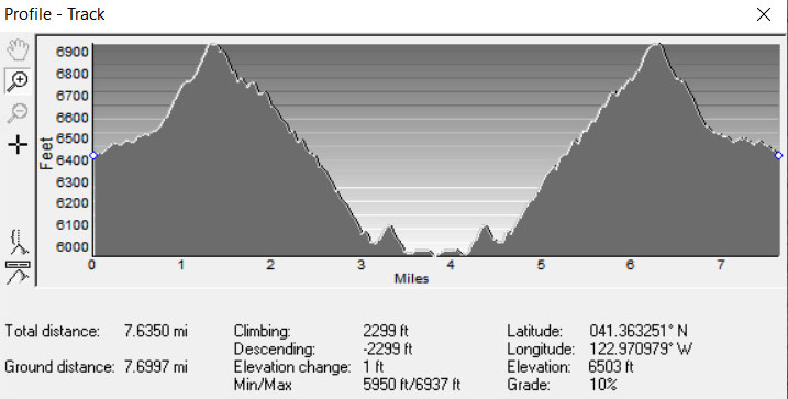 The weather was good and mostly in the 70s at above 6,000′, no smoke on the trail.