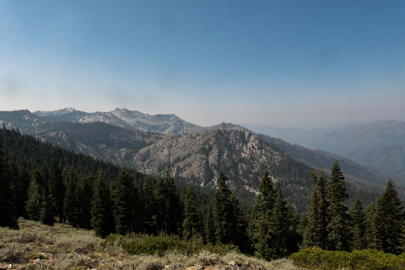 Four of us headed to Etna Summit to hike to the Taylor Lake overlook. Smoke was in the air and we all were concerned about the possible rising smoke levels. When we arrived at the trailhead it was 72 degrees and the air was marginal. However, we all decided to continue our plan of hiking to the overlook, so up we went.