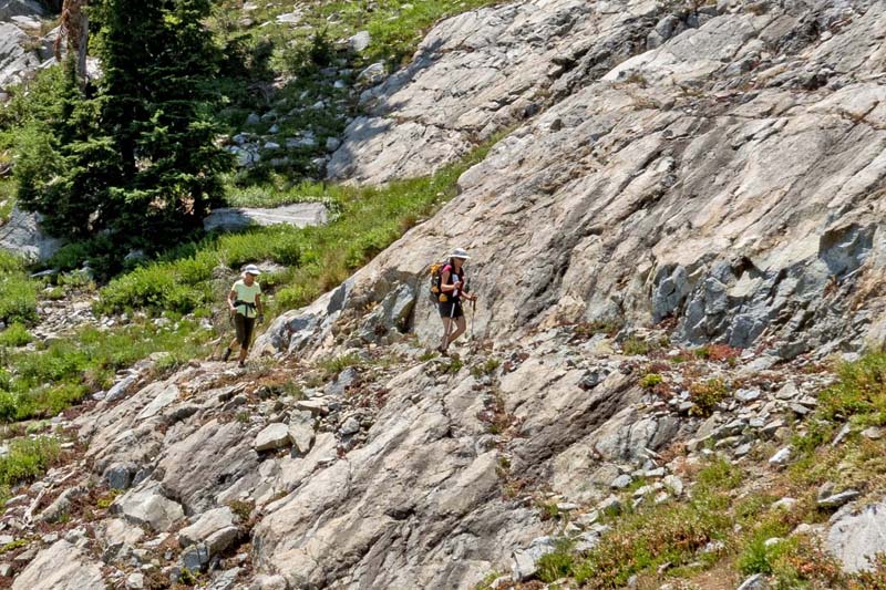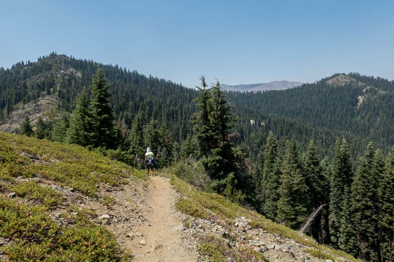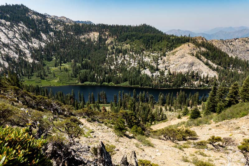 Along the way we pasted 11 PCT hikers. Most started in Mexico and looked the part. We made it to the overlook and took a short break, then back up to the Smith Lake overlook where we took our lunch. We noticed one person floating in the lake, which is a long ways down from the trail.