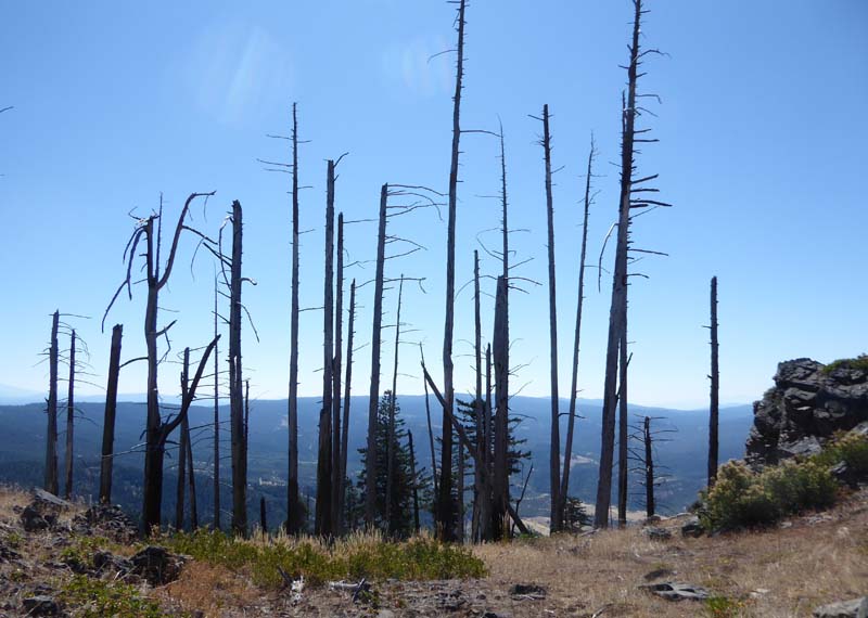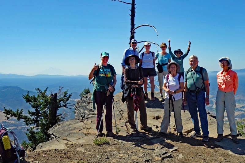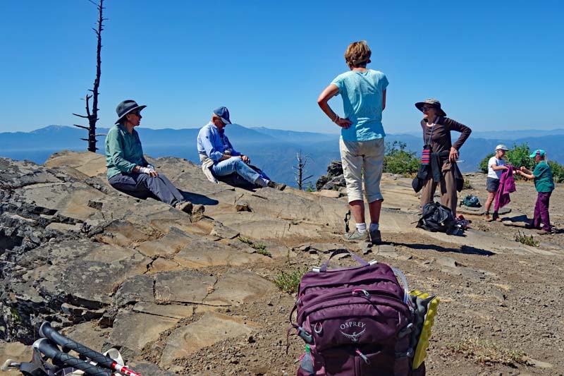 All of our notable mountains were visible through the familiar summer haze. One hiker observed that the haze gave the mountain ranges a particular beauty in the subtle variations in their shades of grey/blue, similar to the effects seen in the Blue Ridge Mountains of North Carolina.
