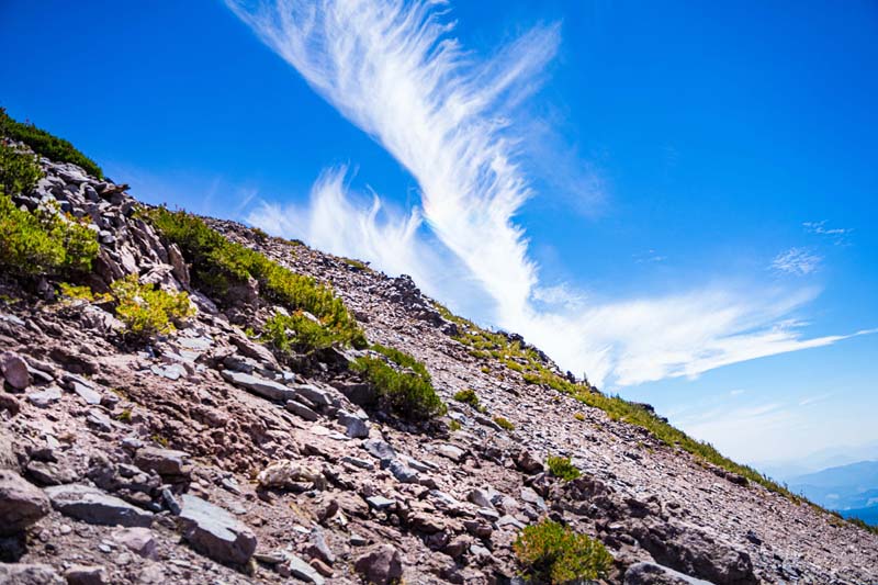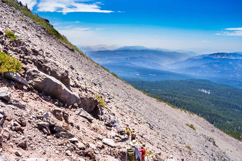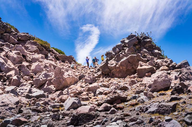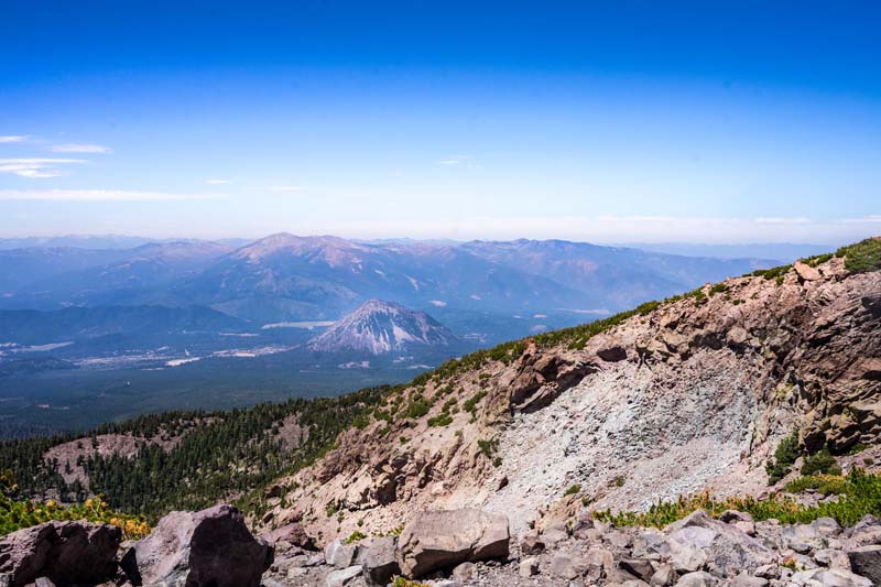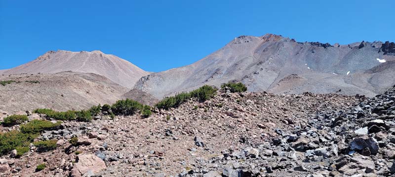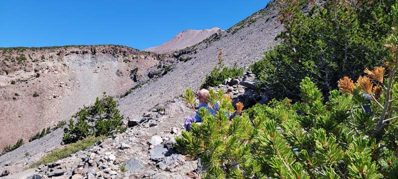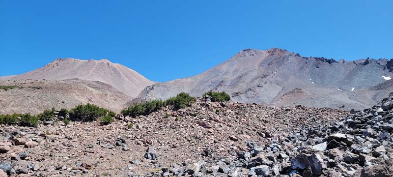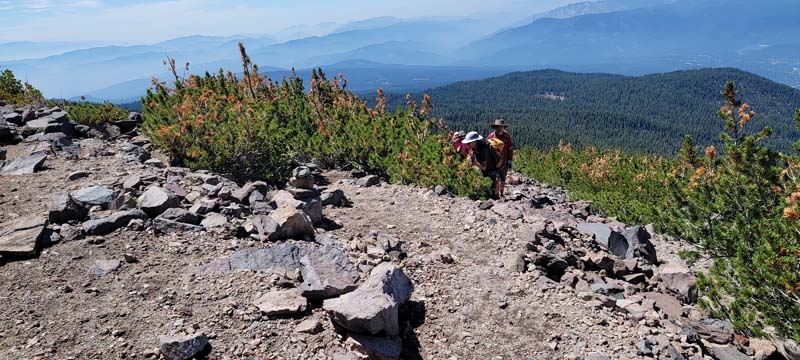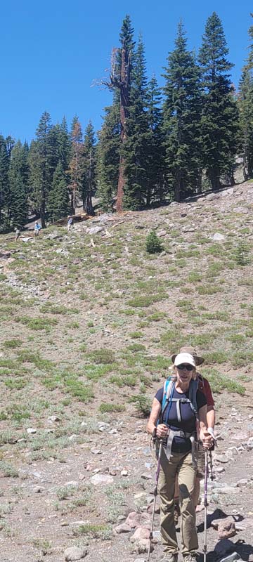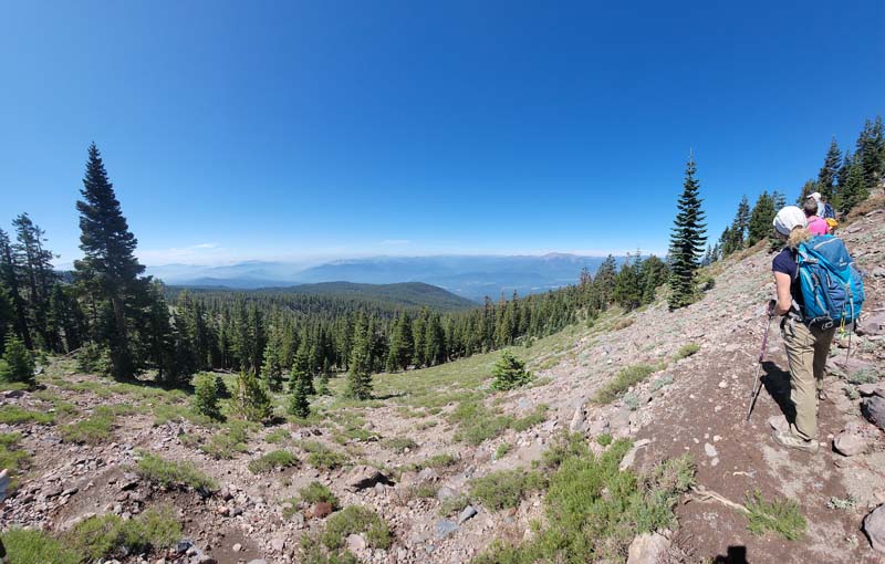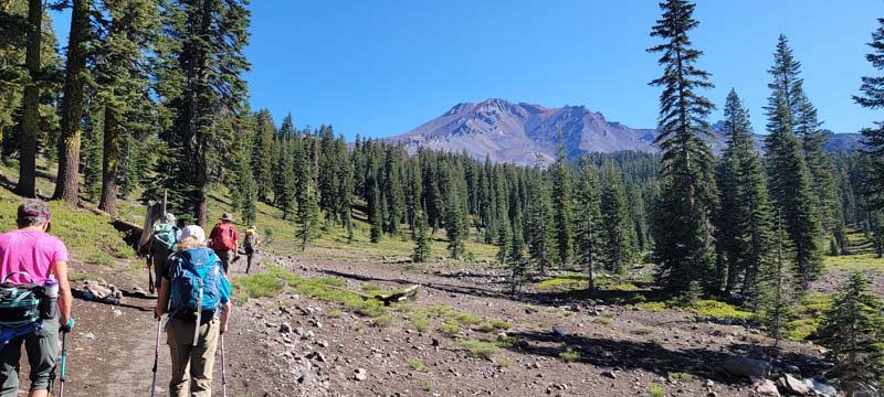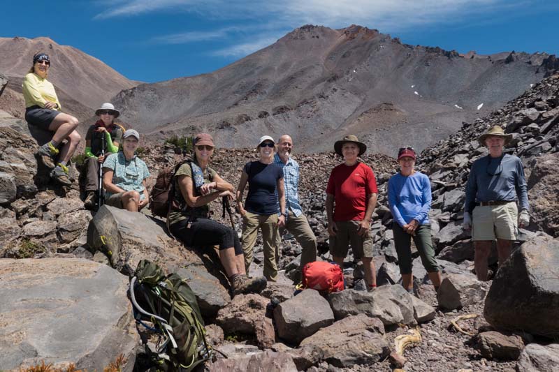 Nine of us headed south to hike part way up the west side of Mt. Shasta to Hidden Valley. It was somewhat smoky in Ashland as we left and it got worse as we drove farther south. Then, as we headed up from Mt. Shasta (the city) to Bunny Flat, the smoke started thinning out. By the time we reached 6,900 feet elevation the smoke cleared. It was a very exciting moment for the group.
