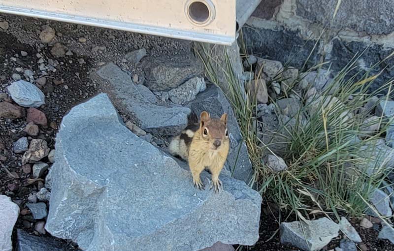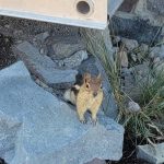 Everyone made it to the lunch spot and we took a longer lunch than usual, enjoying the clean air, wonderful views and sunshine. It actually seemed a bit cold with 65 degree temperatures and a slight breeze. Someone ended up having melted chocolate on the outside of their pack, so an aggressive chipmuck came along to help clean up the mess.