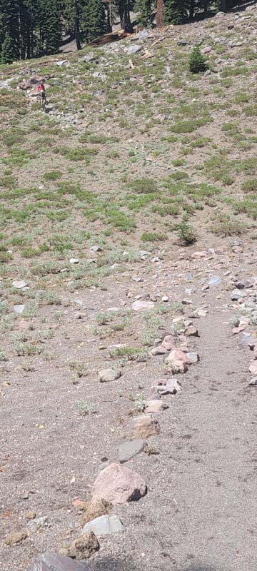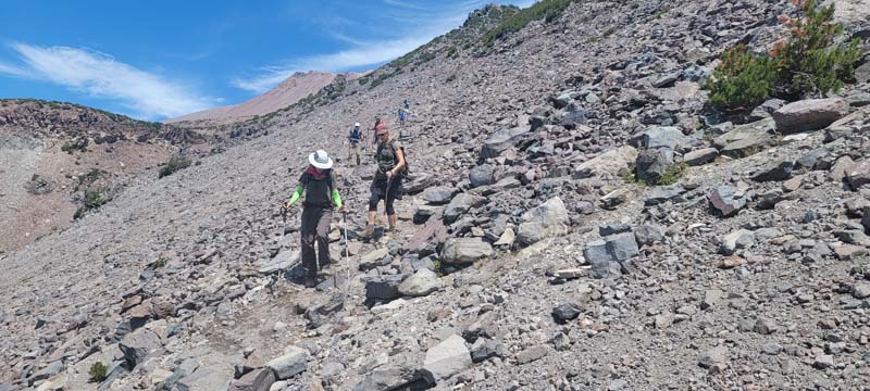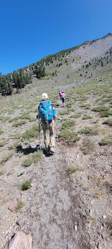 This is a hike that has a lot of up, especially in the last mile where you are tired and still need to hike up 1,200 feet to Hidden Valley. It had rained the night before so there was no dust and the loose scree and sandy soil stuck together. The trail was weak in places and it took the group to stay on track to the top.