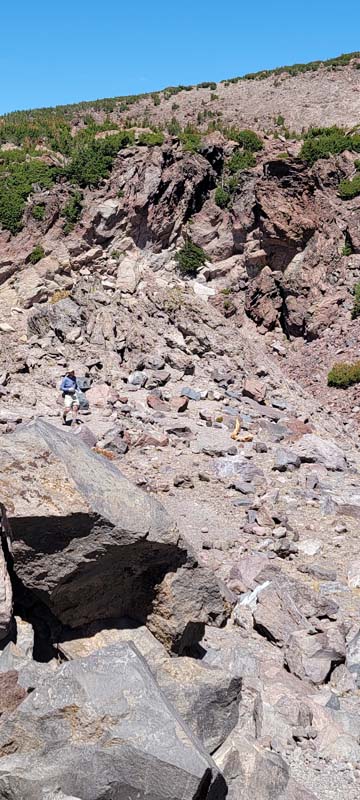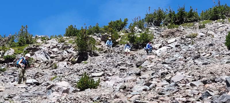 The trip down was tricky due to the scree and sandy steep slope, along with the many boulders that needed to be overcome. We all wondered how we got up and now were wondering how we were going to make it down. However, by taking our time, everyone made it down without incident.